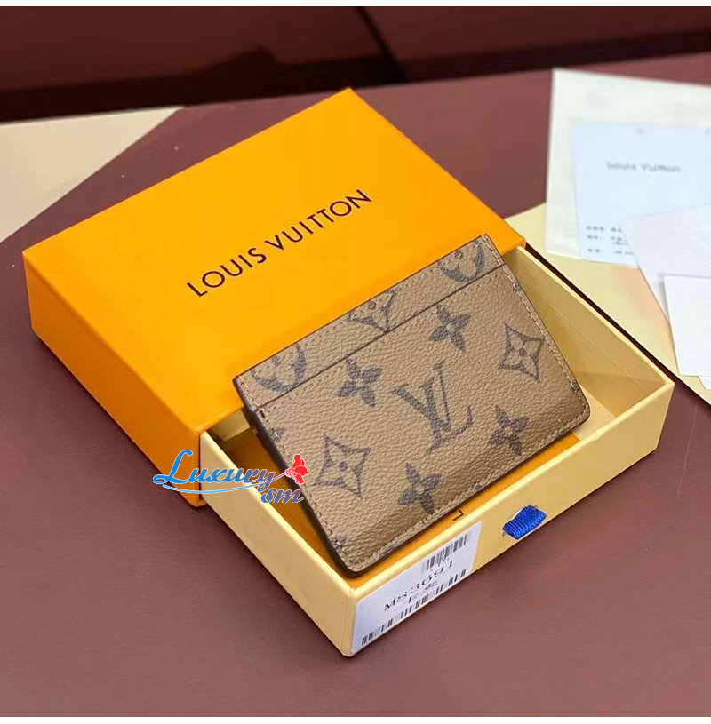 이는 모노그램 리버스 캔버스 소재의 카드 홀더.