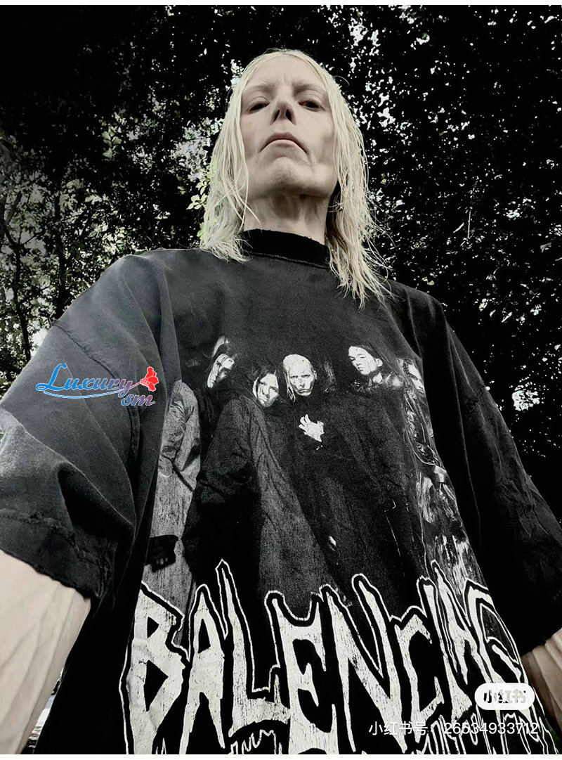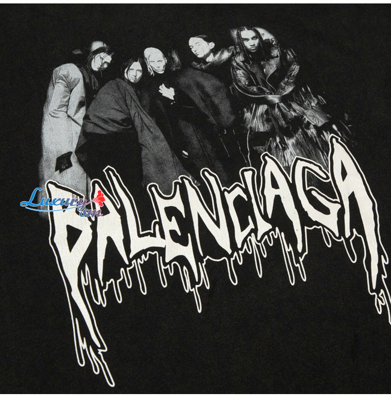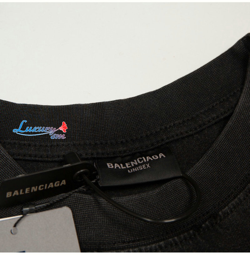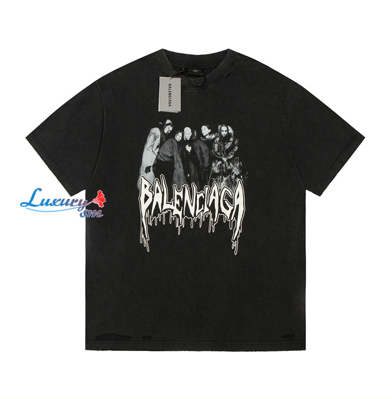 BALENCIAGA-07185 발렌시아가 블랙 프린트 장식 빈티지 티셔츠 남여공용