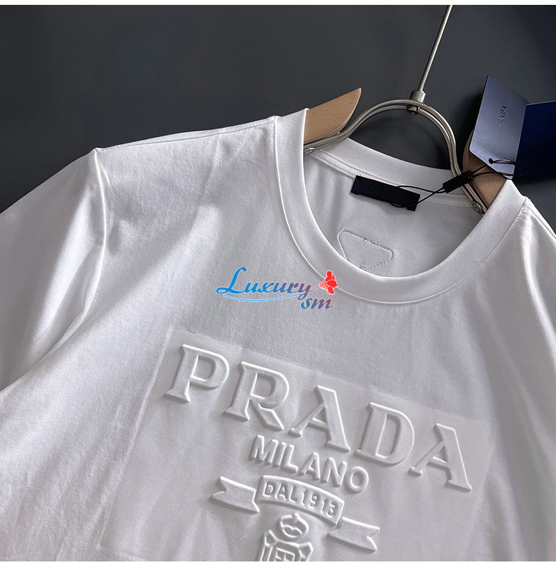 PRADA-07214 프라다 화이트 트라이앵글 로고 티셔츠 남성용
