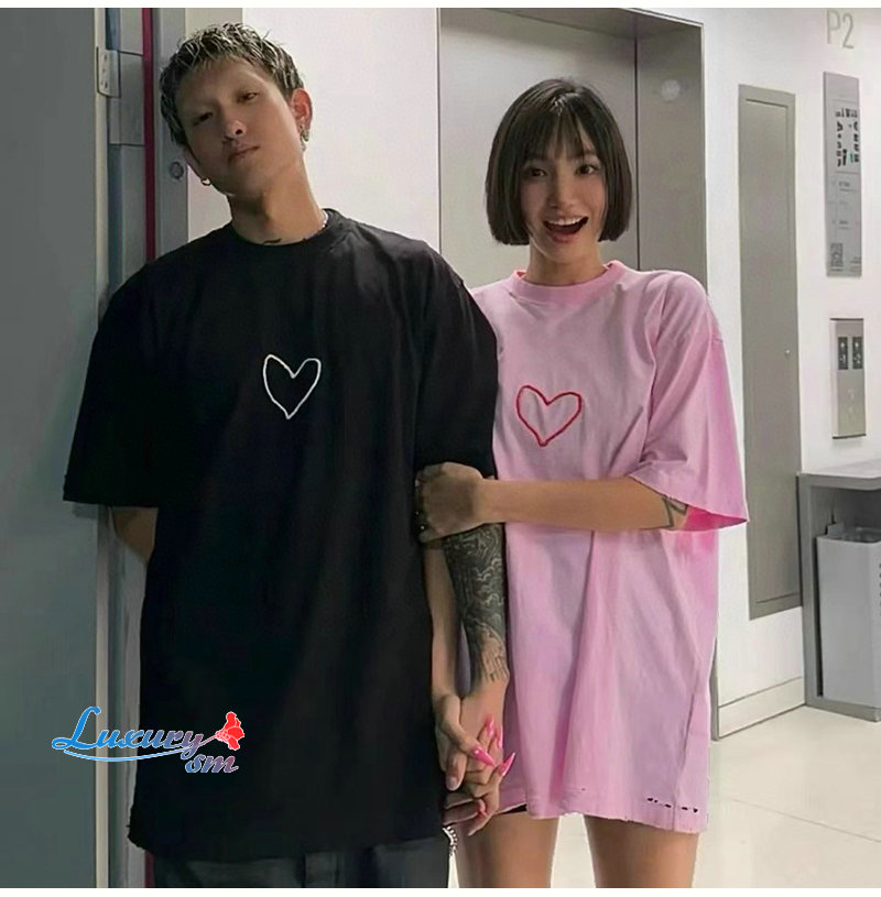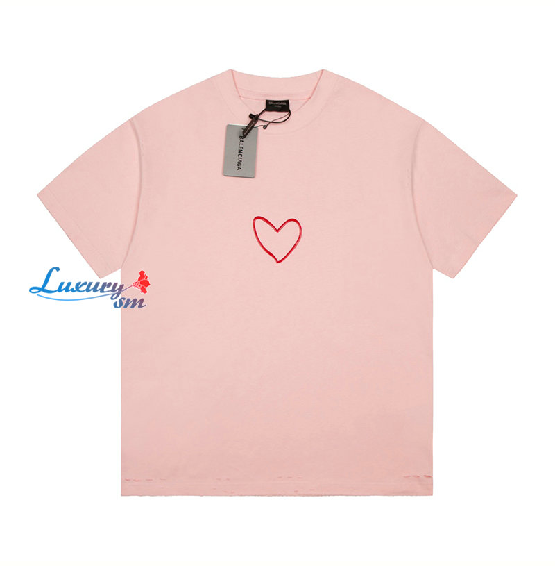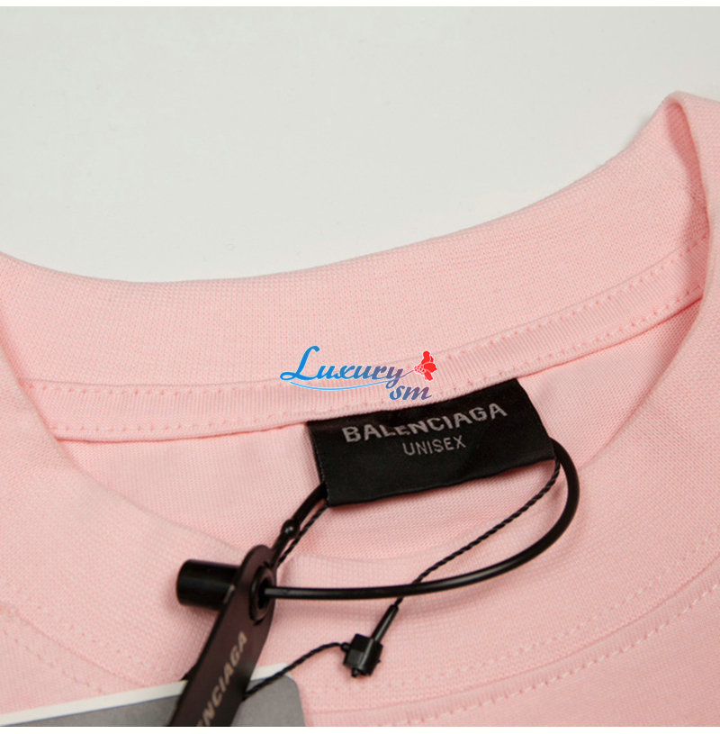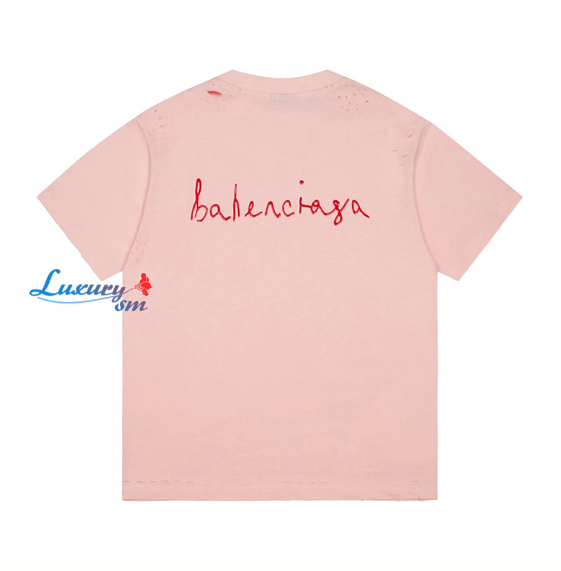 BALENCIAGA-07304 발렌시아가 핑크 프린트 장식 티셔츠 남여공용
