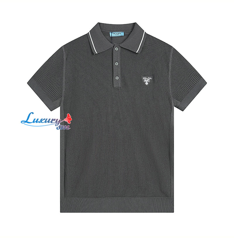 PRADA-07292 프라다 그레이 니트 코튼 폴로 티셔츠 남여공용
