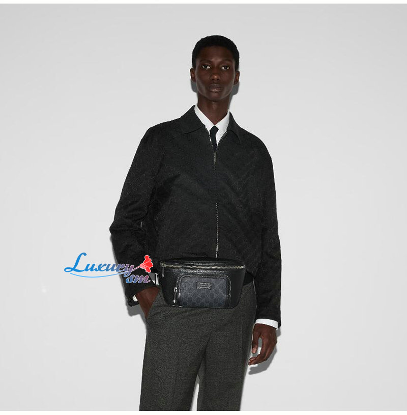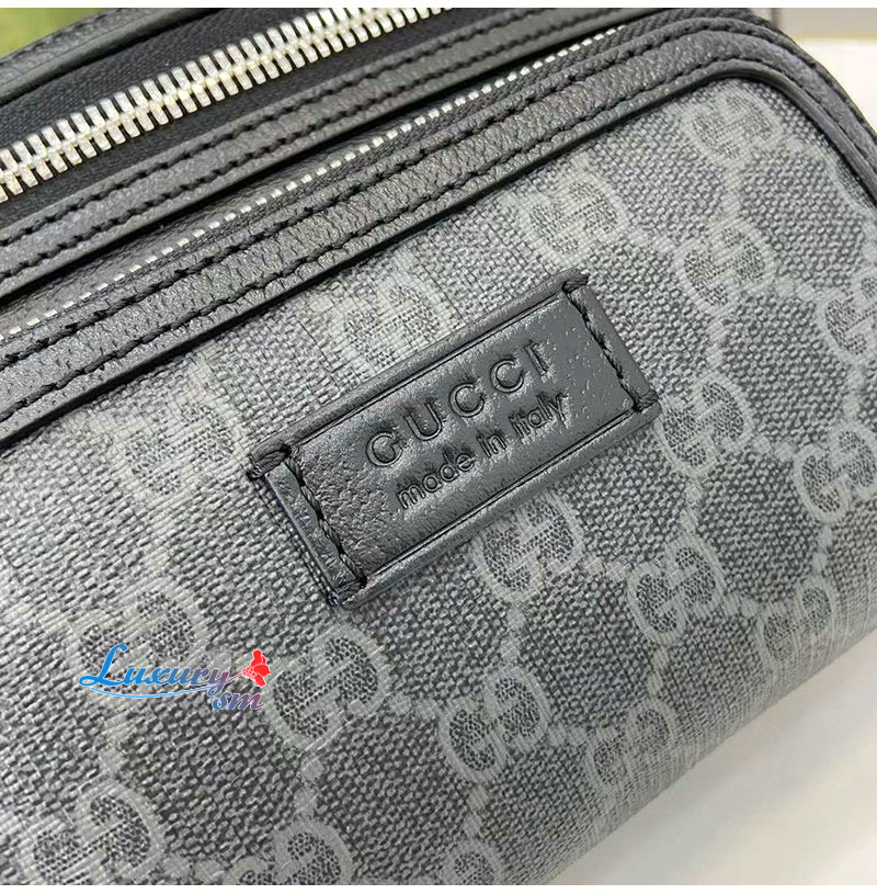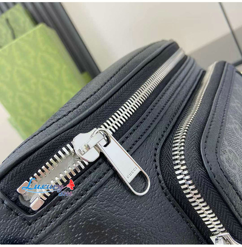 블랙 레더와 GG수프림 캔버스 소재에 지퍼 포켓을
