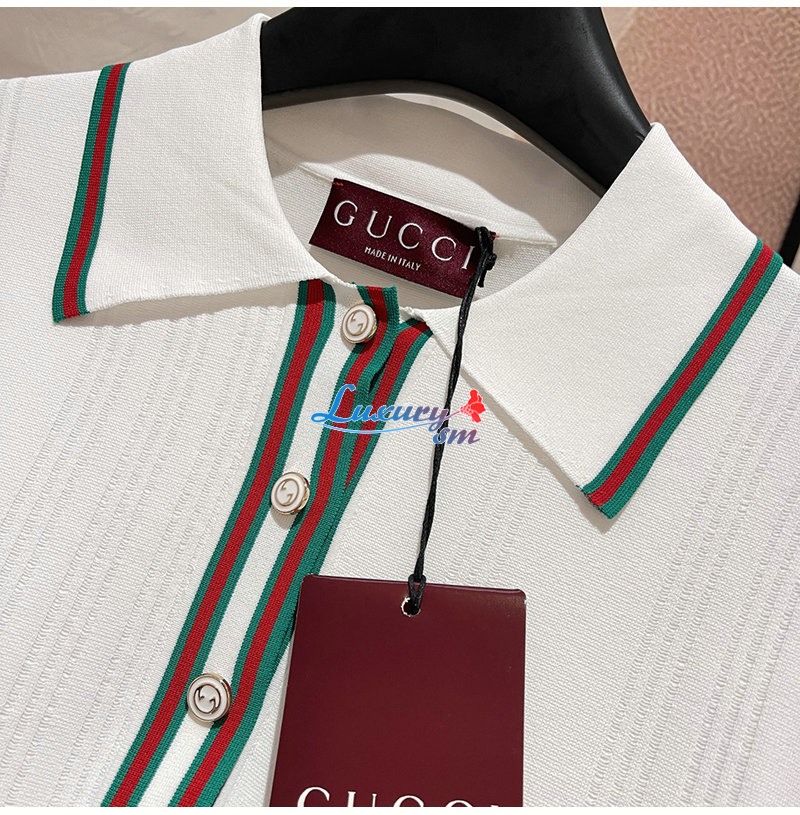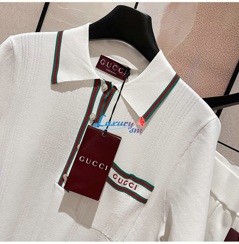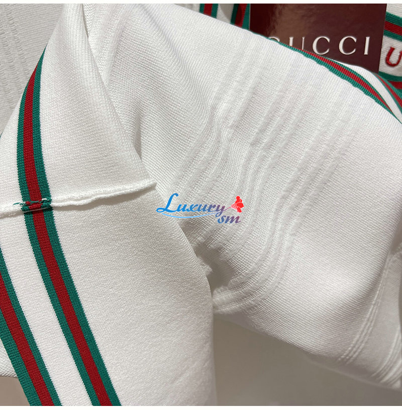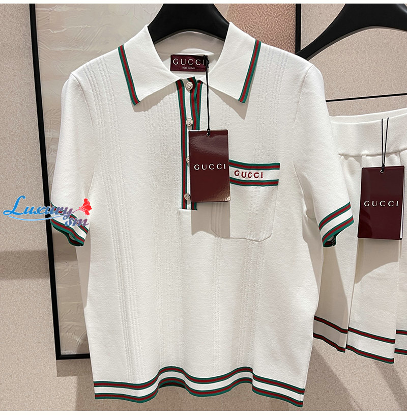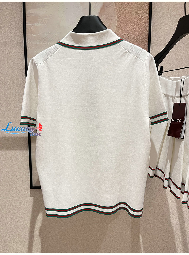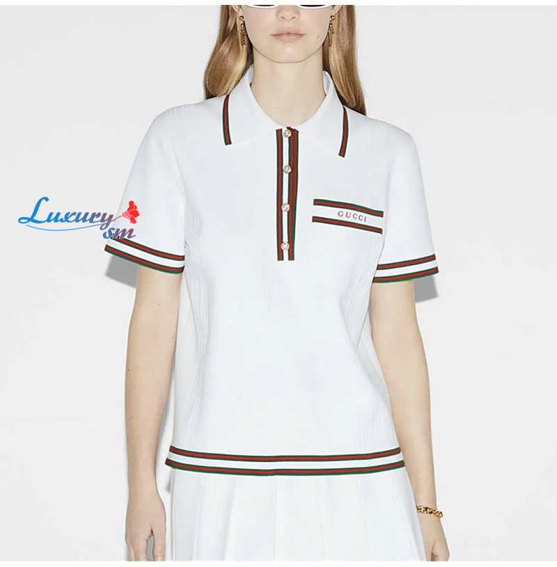 GUCCI-07306 구찌 화이트 스트라이프 장식 폴로 트셔츠 여성용