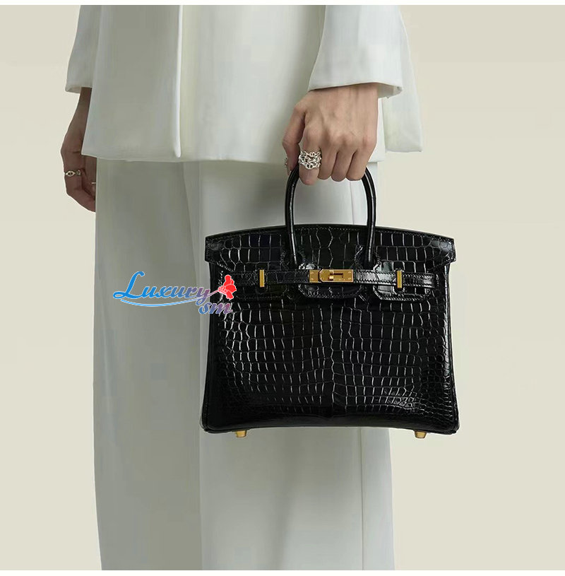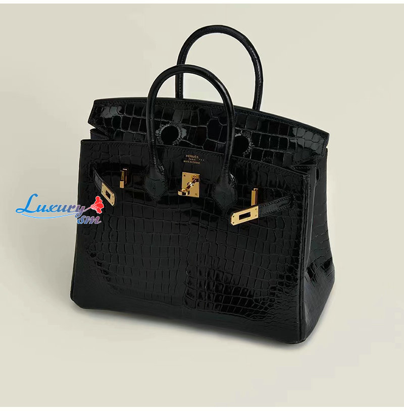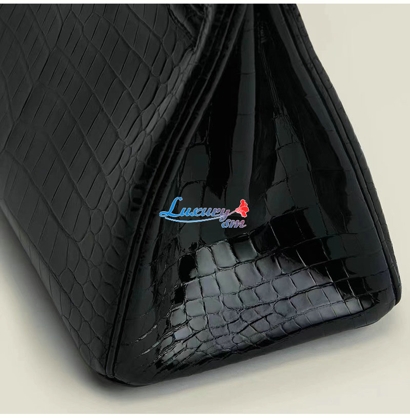 [스페셜오더]HERMES-에르메스 블랙 페이턴트 악어가죽 벌킨 25