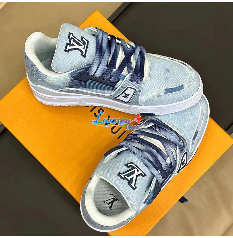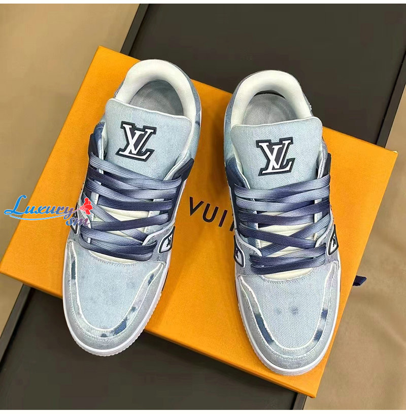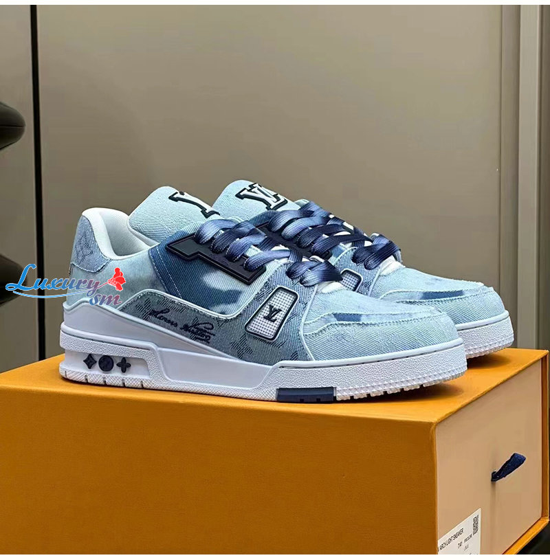 LOUIS VUITTON-1ACVNC 루이비통 블루 모노그램 데님 LV 트레이너 스니커즈 남여공용