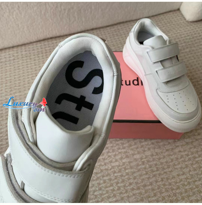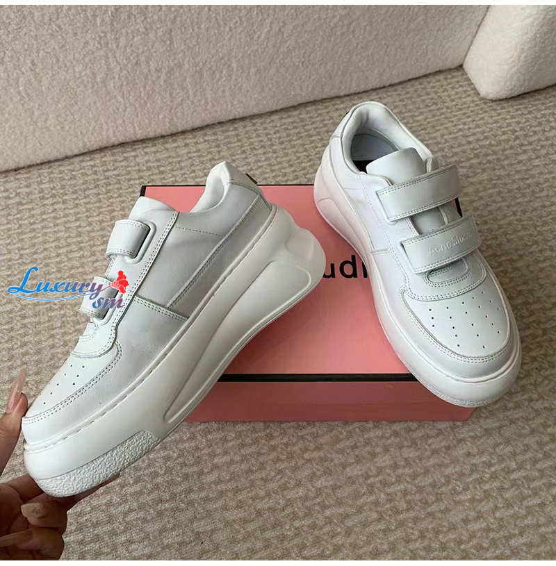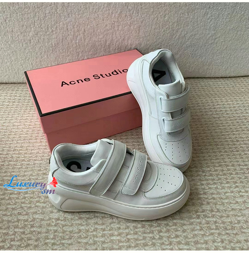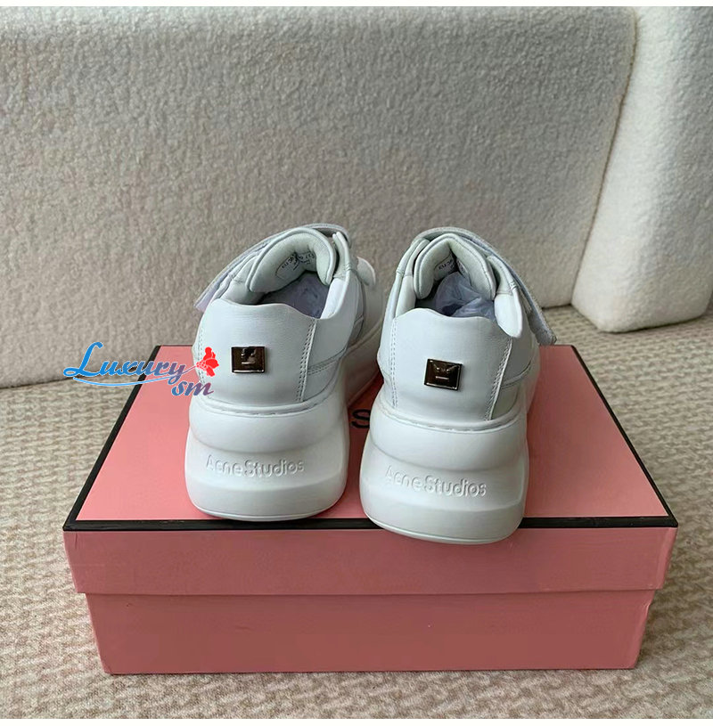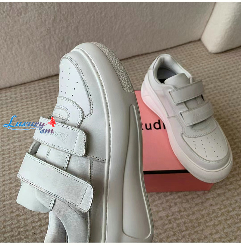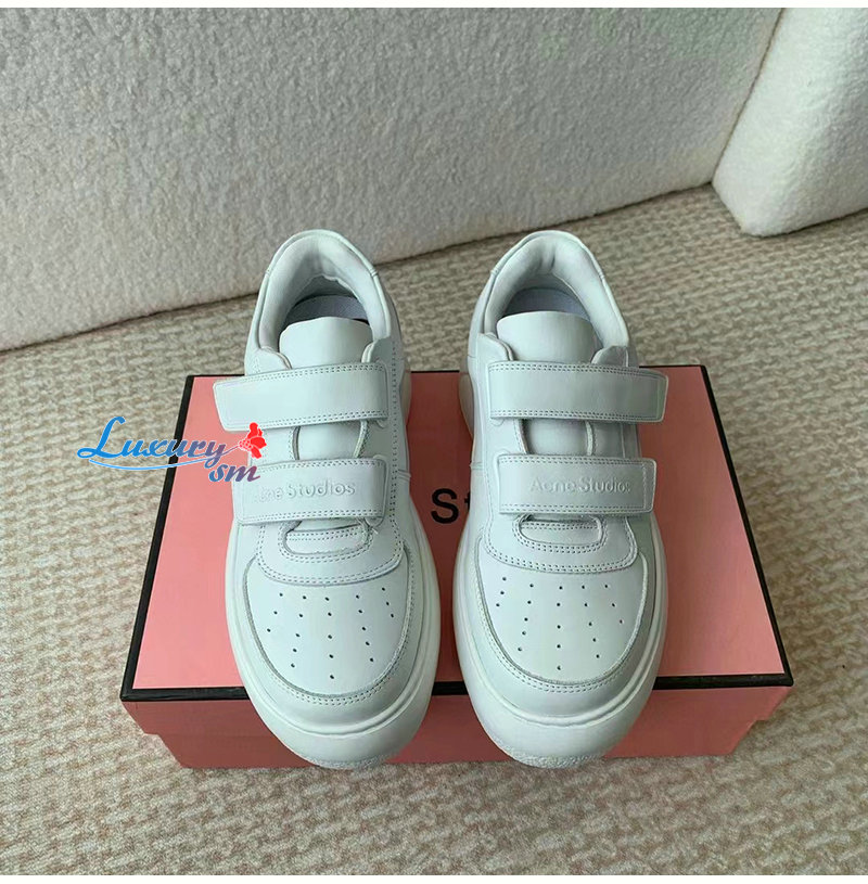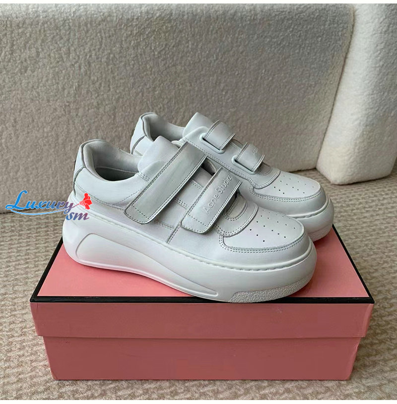 ACNE-아크네 화이트 벨크로 스트랩 통굽 스니커즈 여성용