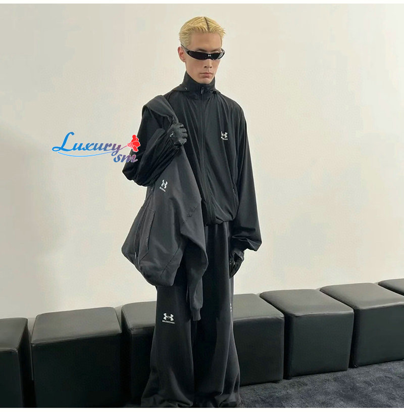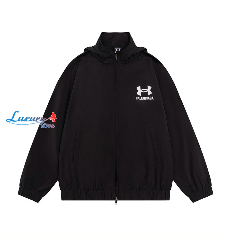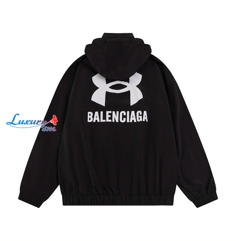 BALENCIAGA-08201 발렌시아가 블랙 프린트 장식 바람막이 후드 재킷 남여공용