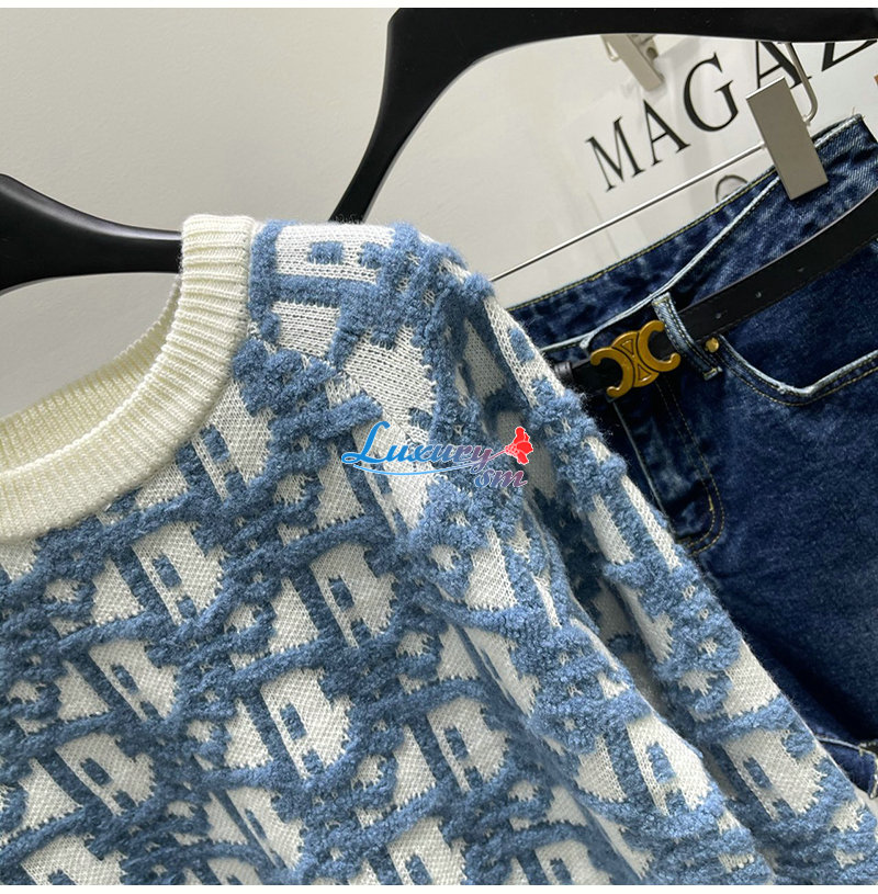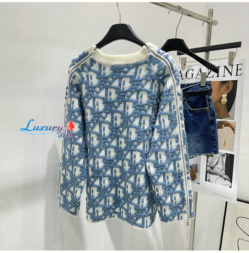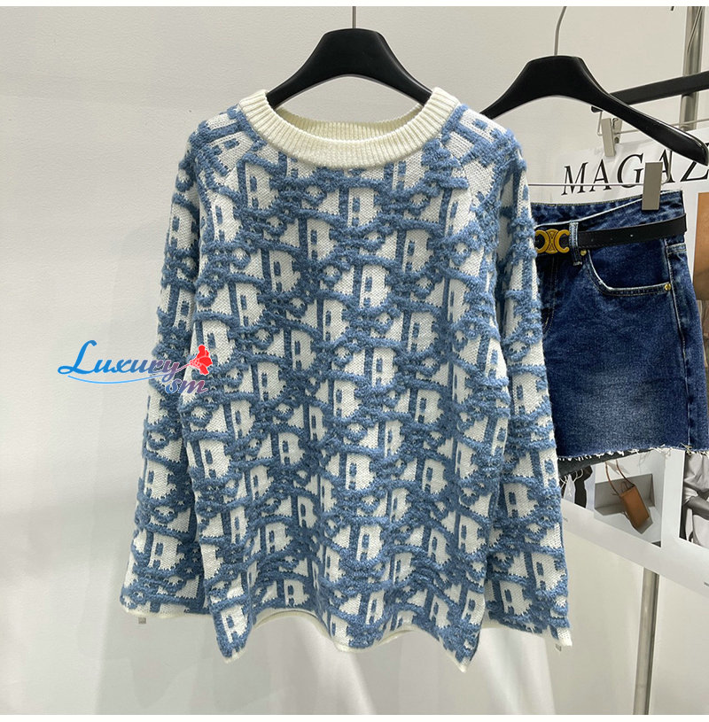 DIOR-082214 디올 블루/화이트 Dior Oblique 스웨터 여성용