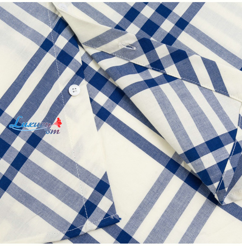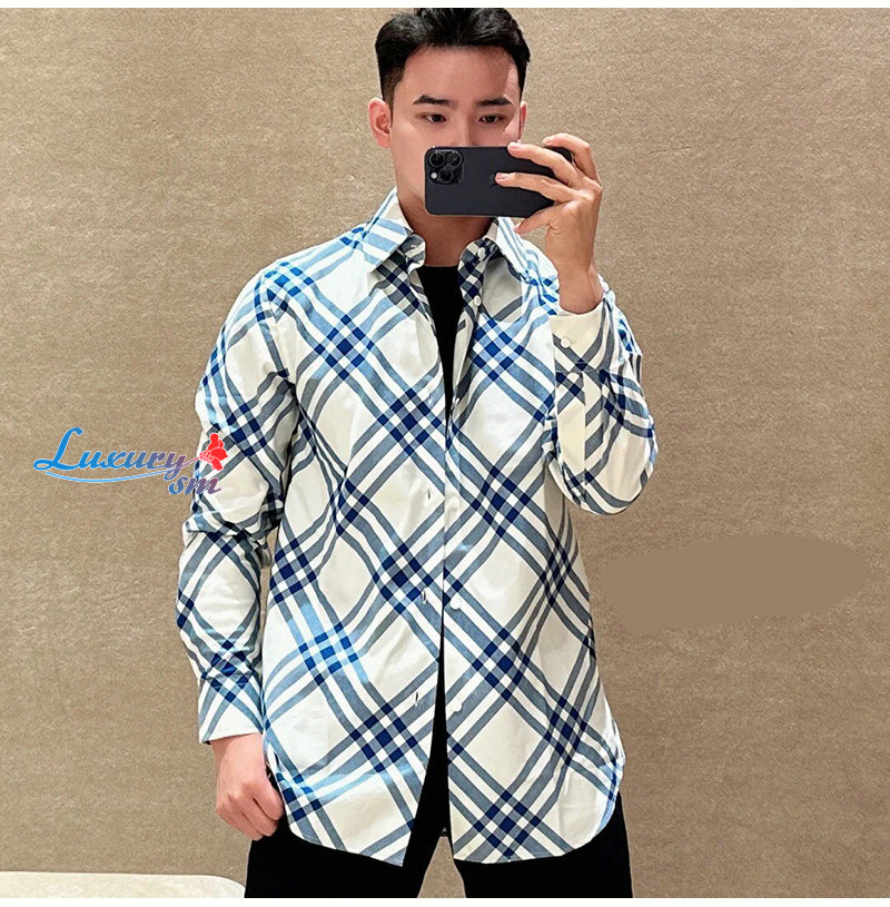 BURBERRY-082014 버버리 화이트/블루 체크 무늬 셔츠 남여공용