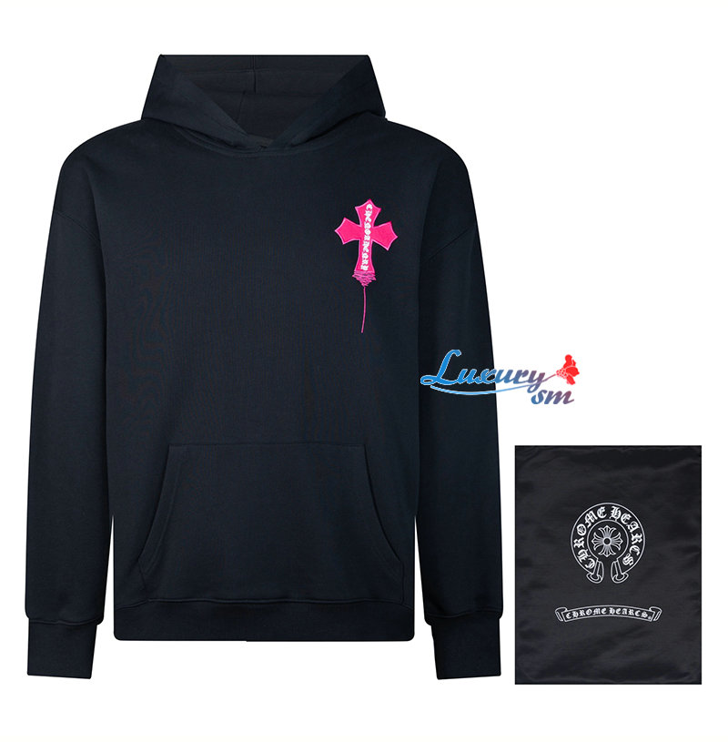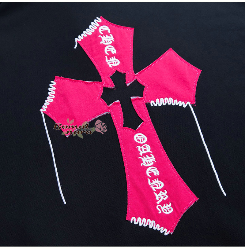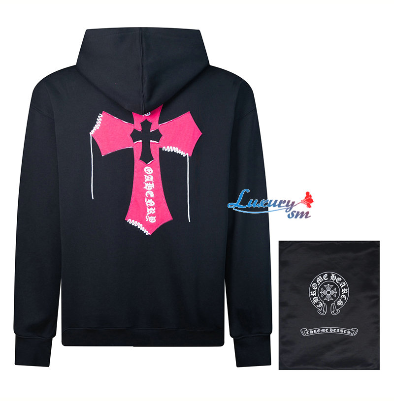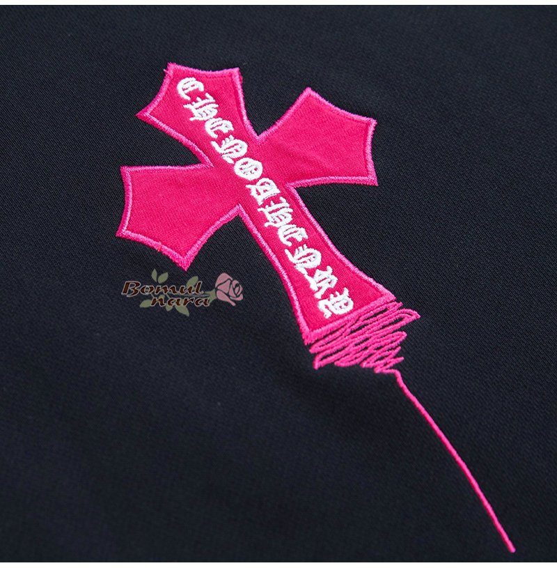 CHROMEHEARTS-08264 크롬하츠 블랙 아플리케 장식 후드 티셔츠 남성용