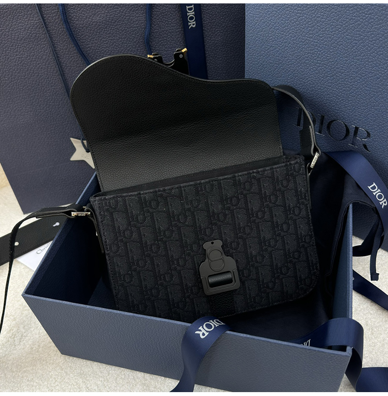 [스페셜오더]DIOR-디올 블랙 Oblique 자카드 Saddle 스몰 플랩 스트랩백 23cm - 1ADPO049YKS_H00N