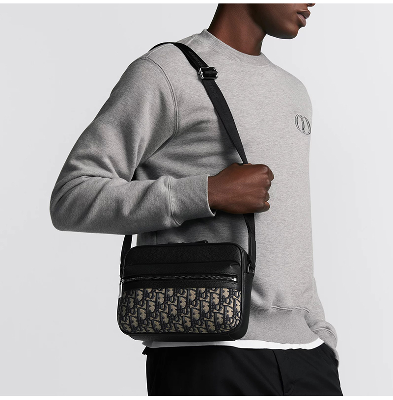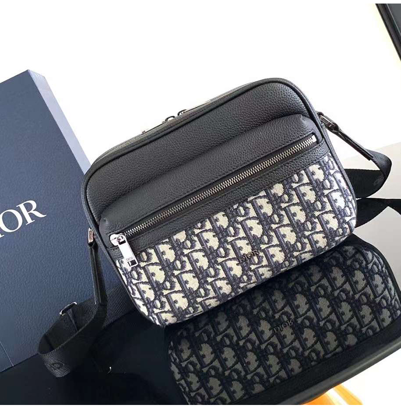 [스페셜오더]DIOR-디올 블랙 Oblique 자카드 Rider 2.0 미니 지퍼 메신저백 18.5cm - 2ESWS034YKS_H03E