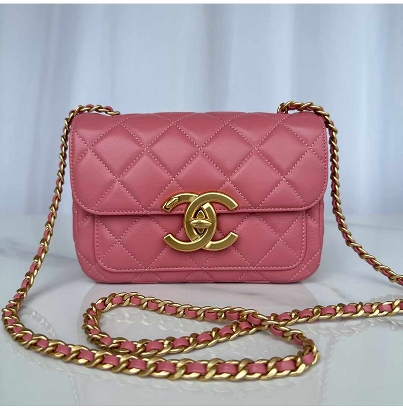 [스페셜오더]CHANEL-AS5026 샤넬 24FW 핑크 램스킨 미니 이미테이션 플랩 백 19cm