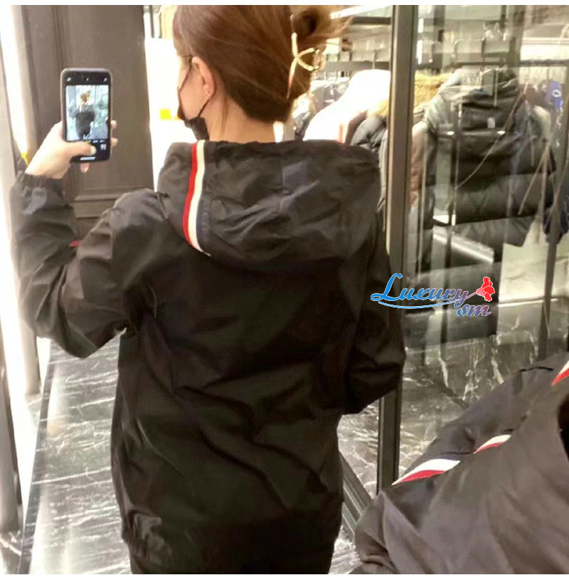 킷은 후드를 따라 장식된 3컬러 리본 디테일과 함