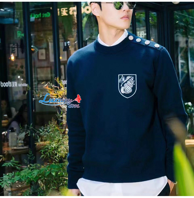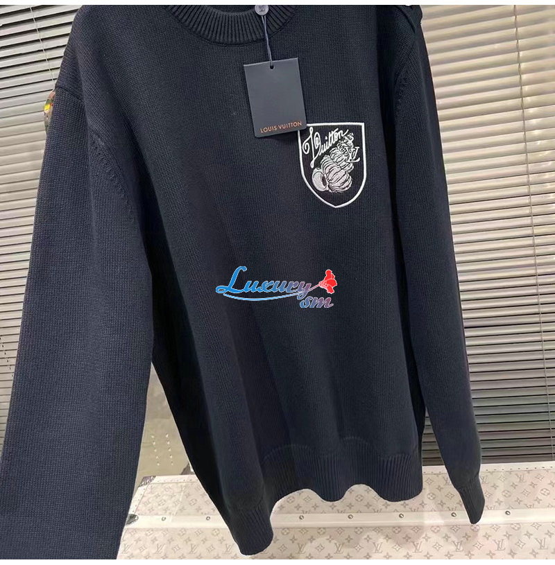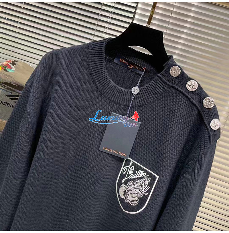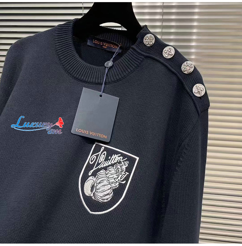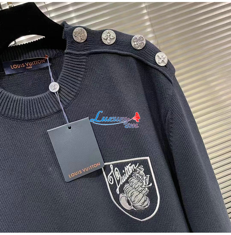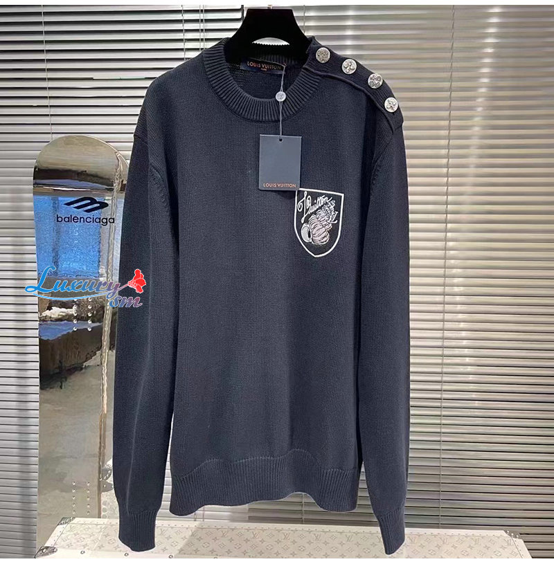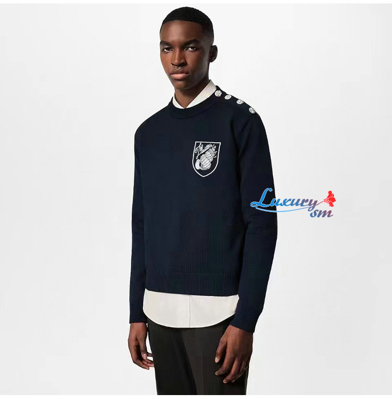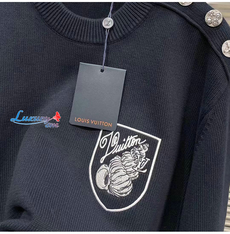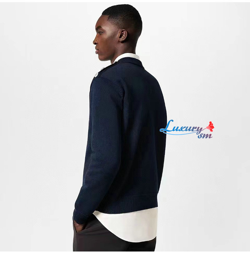 LOUIS VUITTON-1AFQQ3 루이비통 네이비 엠브로이더드 코튼 블렌드 크루넥 남여공용