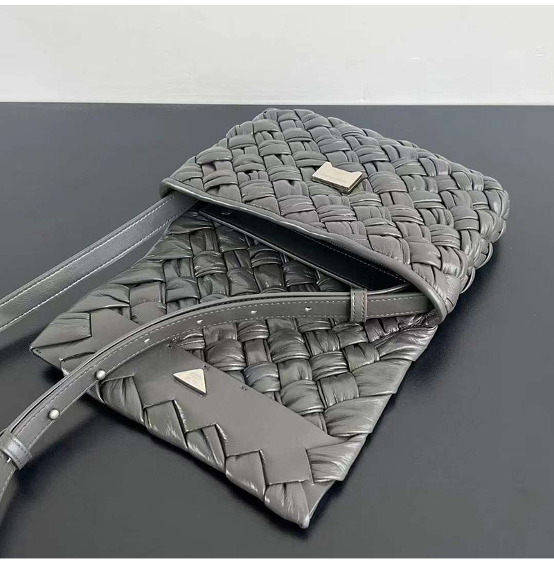 [스페셜오더]BV-787113 보테가 베네타 라이트 그래피트 럼플 스몰 메신저 백 21cm