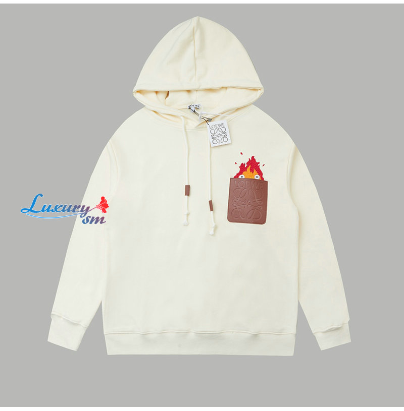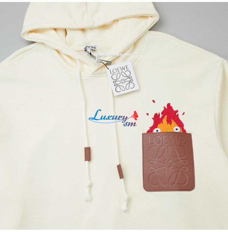 LOEWE-090911 로에베 아이보리 아플리케 장식 후드 티셔츠 남여공용