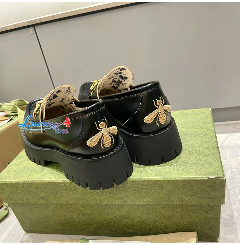 GUCCI-577236 1000 구찌 블랙 레더 러그 솔 홀스빗 로퍼 여성용