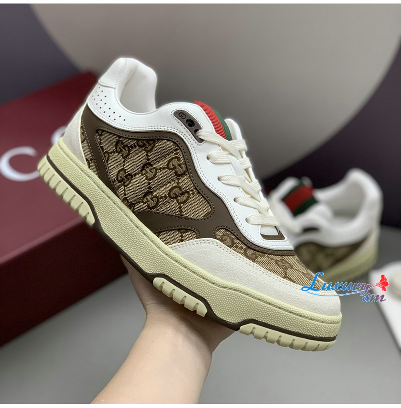 GUCCI-787476 9568 구찌 화이트/브라운 구찌 리웹 스니커즈 남여공용