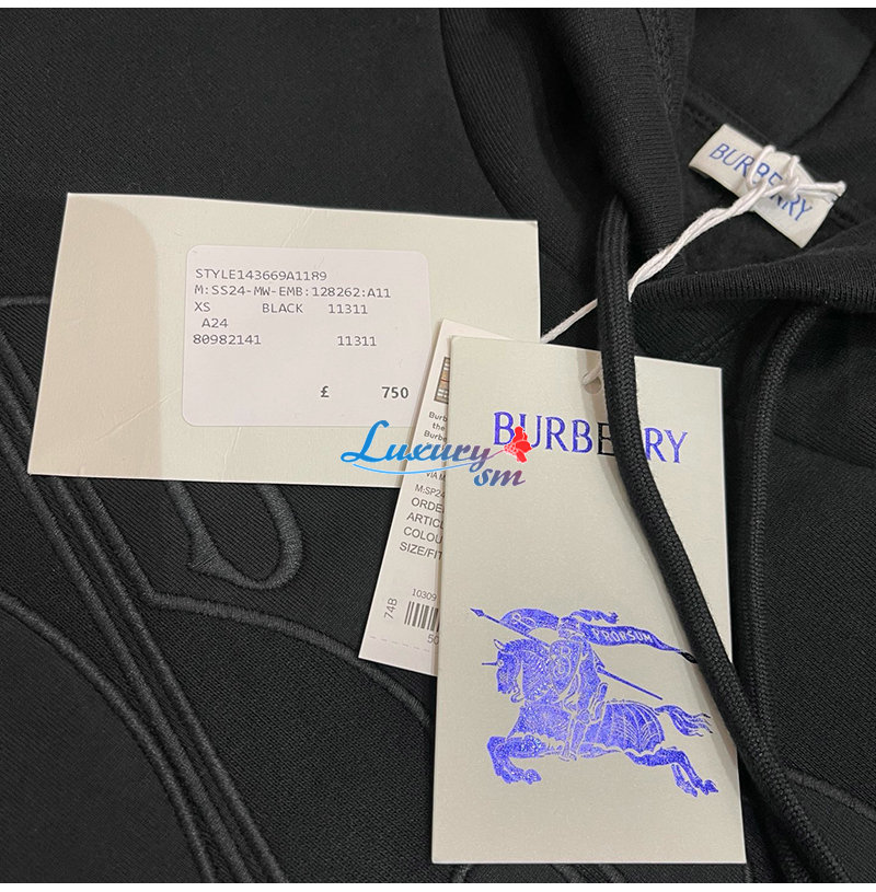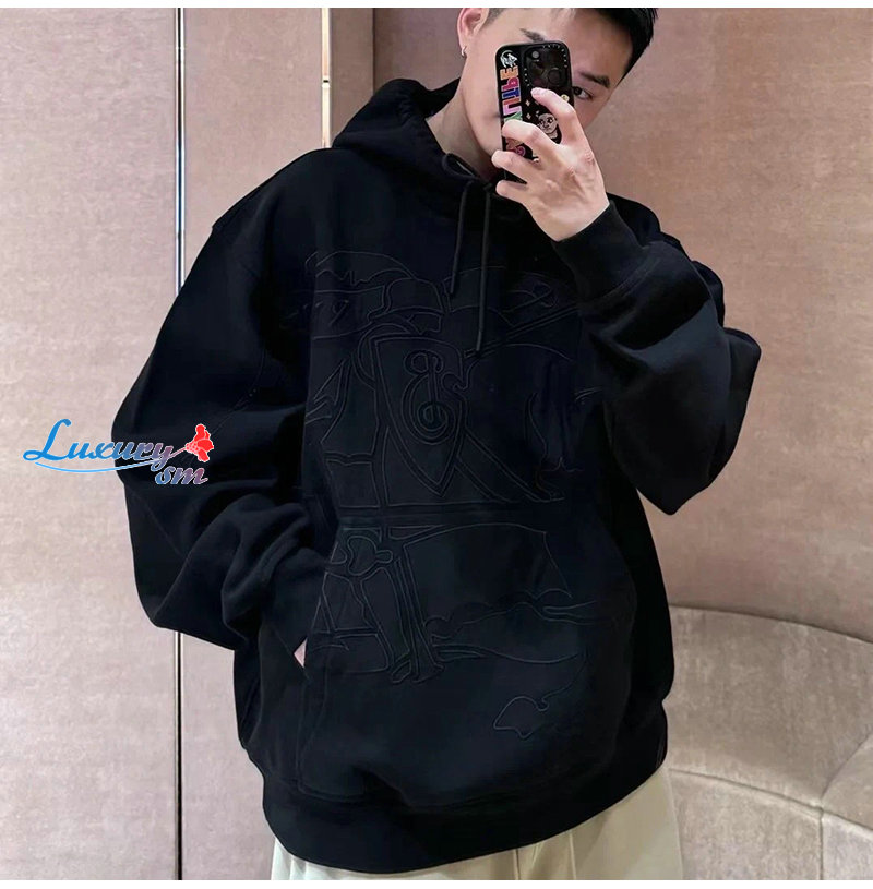 BURBERRY-80982141 버버리 블랙 EKD 코튼 블렌드 후디 남여공용