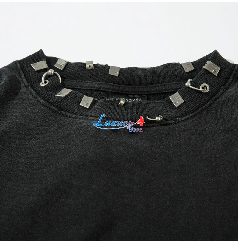 BALENCIAGA-09254 발렌시아가 블랙 메탈 트리밍 빈티지 스웨트셔츠 남성용