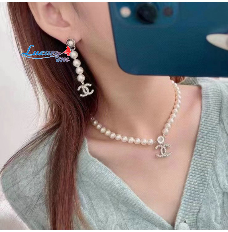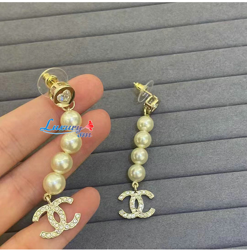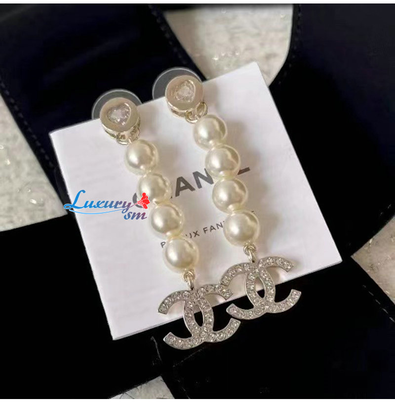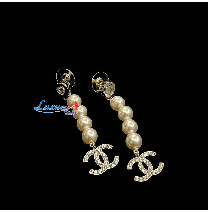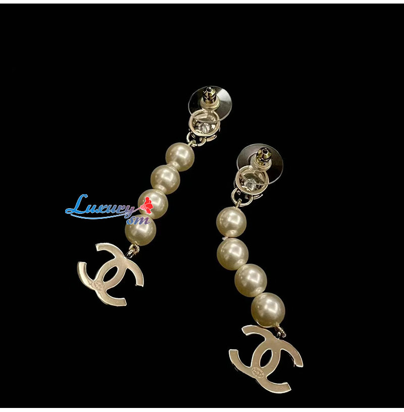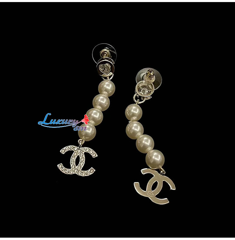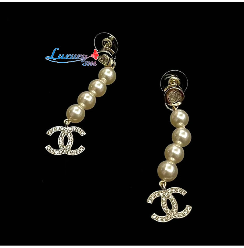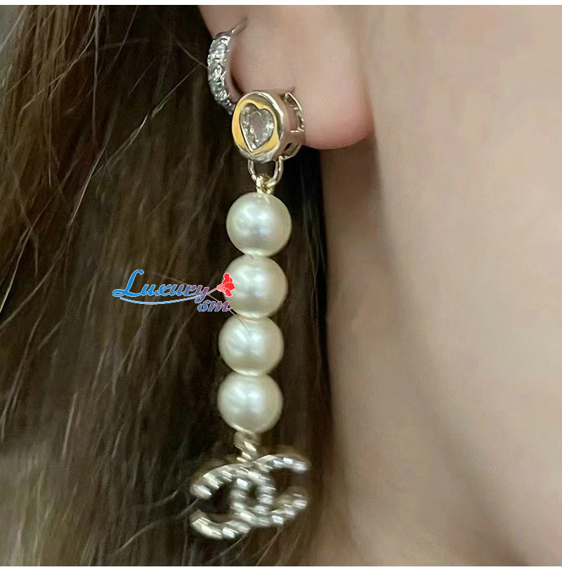 CHANEL-7546 샤넬 펄 크리스탈 장식 CC 로고 귀걸이