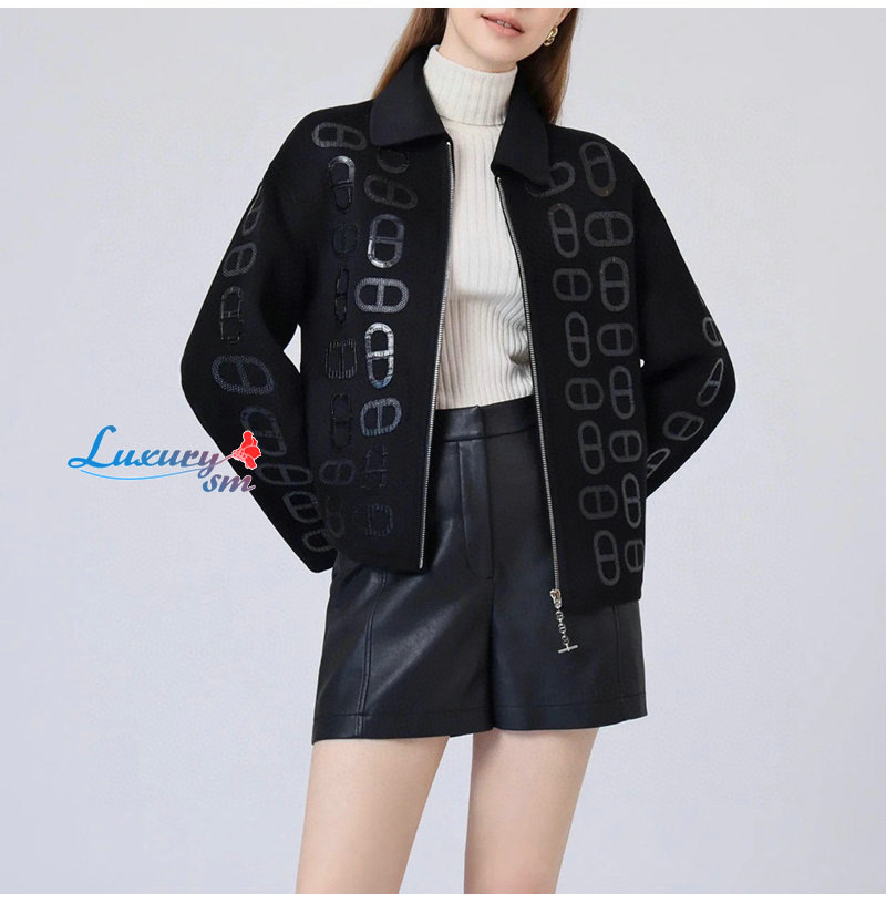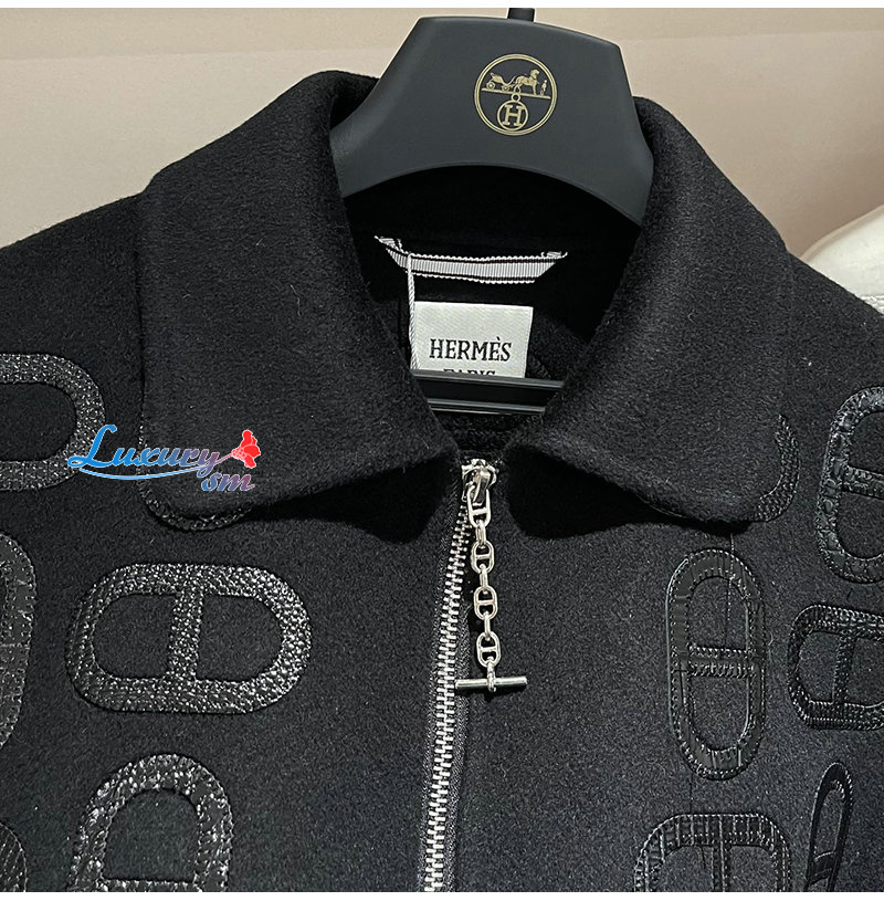 HERMES-092515 에르메스 블랙 아플리케 장식 재킷 여성용