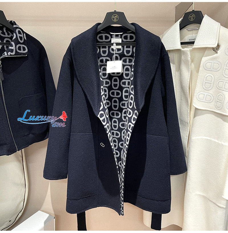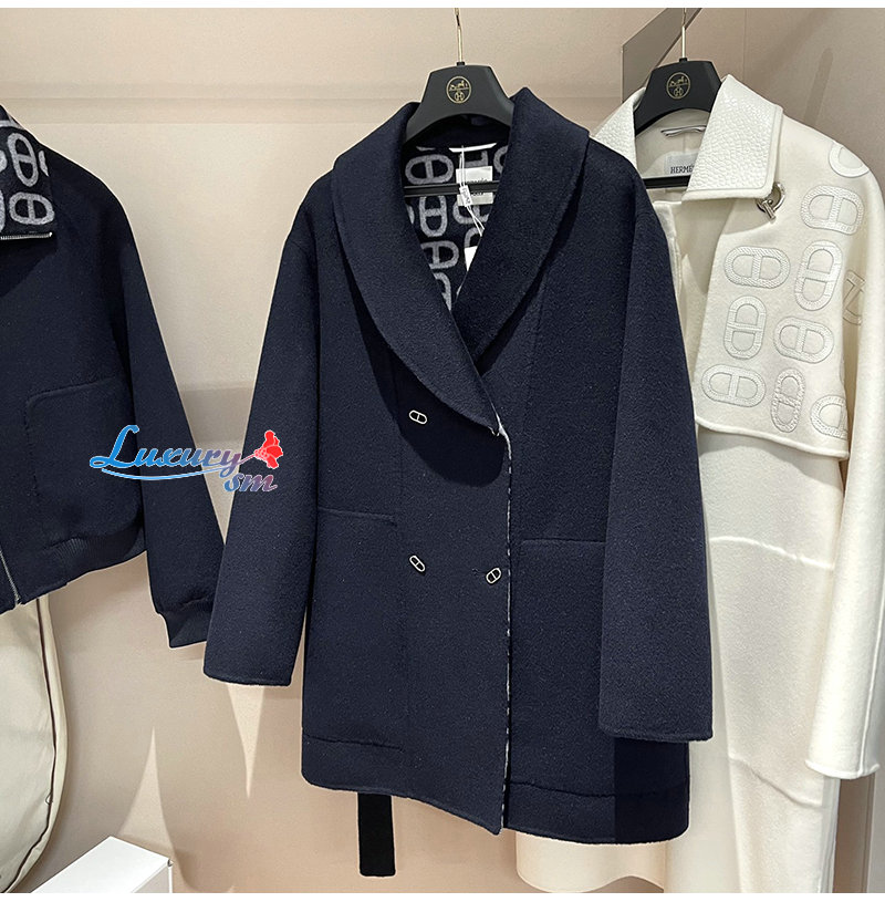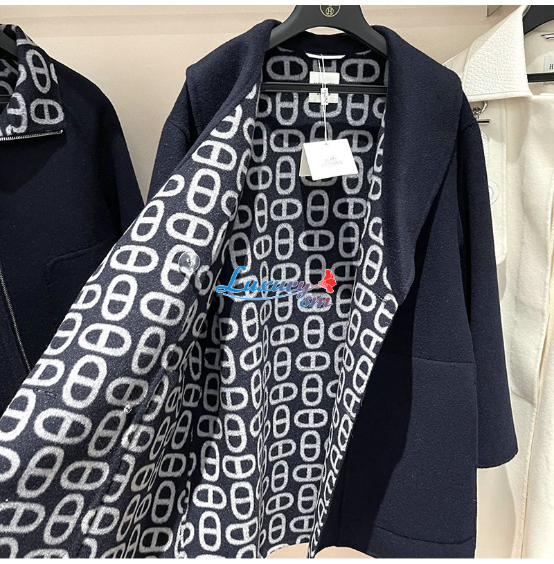 HERMES-092516 에르메스 네이비 울 코트 여성용