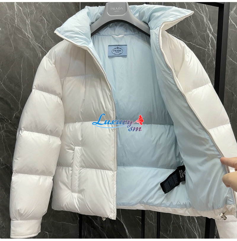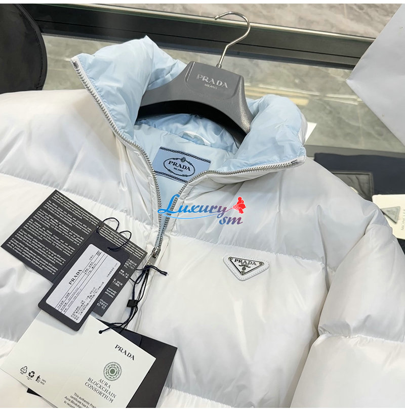 PRADA-10134 프라다 화이트 트라이앵글 로고 패딩 여성용