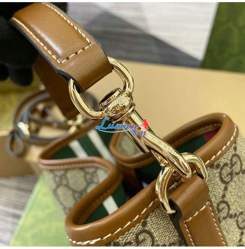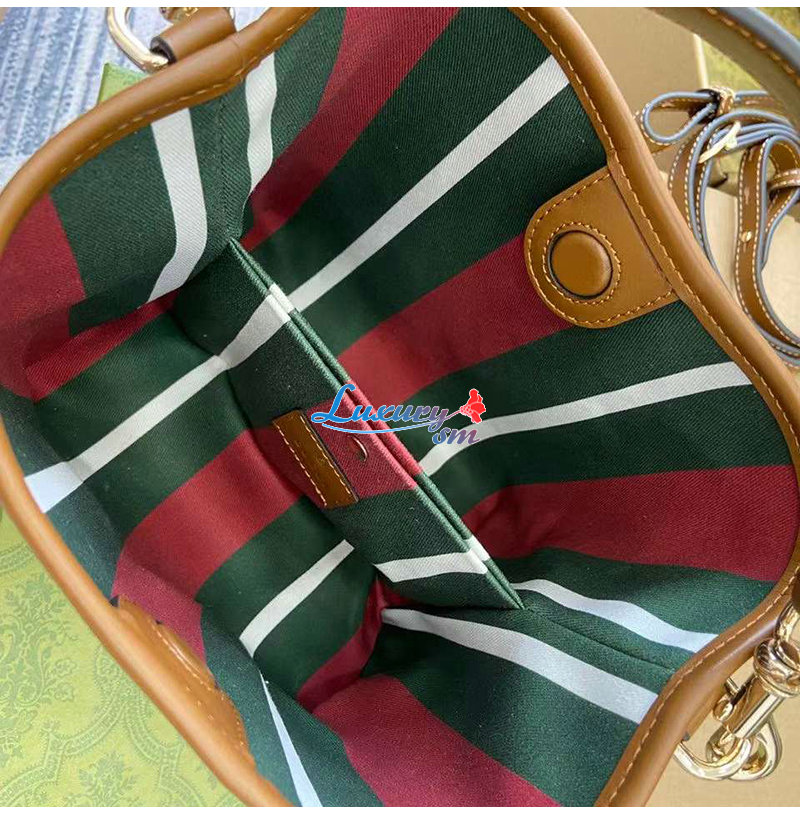 이 미니 버킷백은 웹(Web) 코튼 안감, 내부 컴