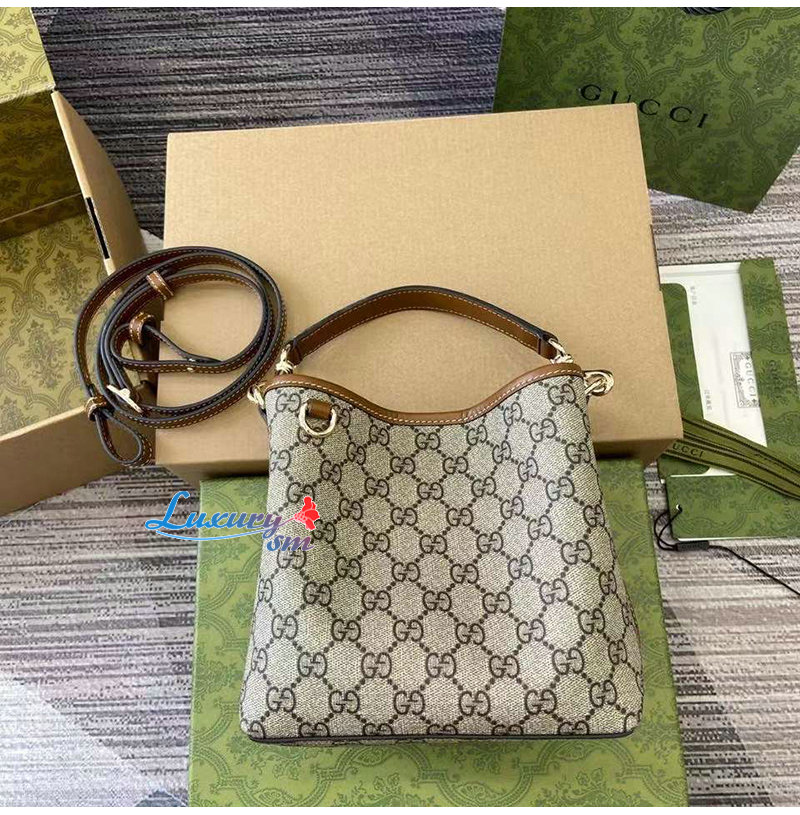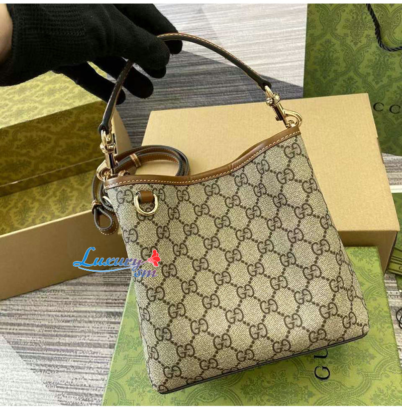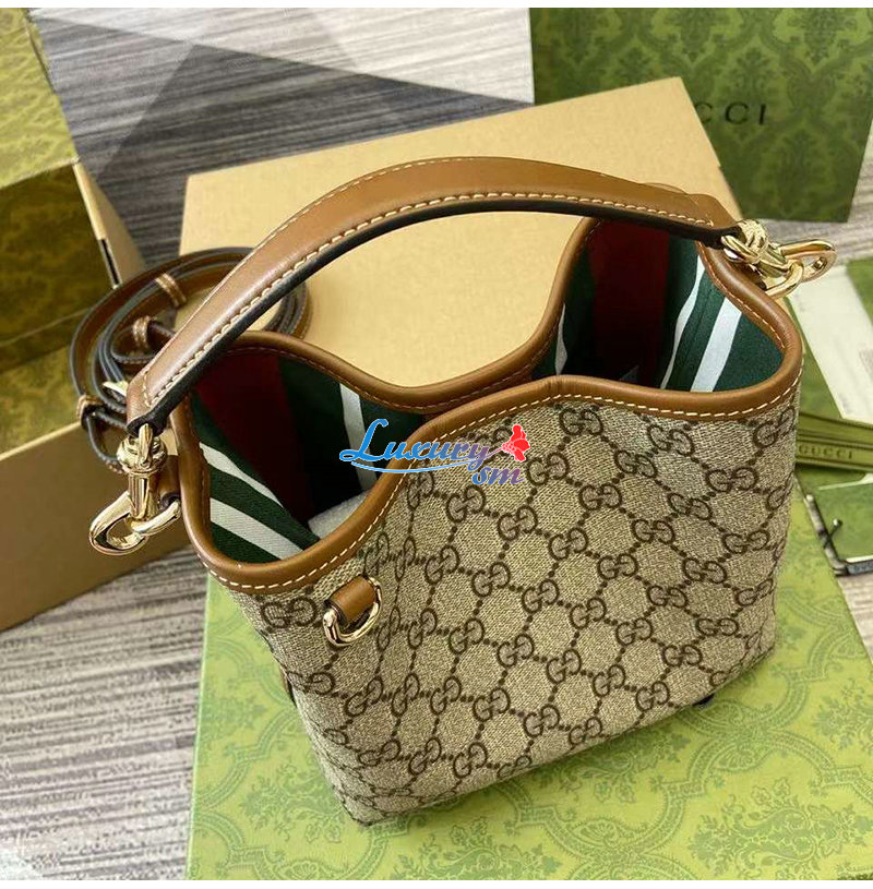 [스페셜오더]GUCCI-815118 9758 구찌 베이지 GG 엠블럼 미니 버킷백
