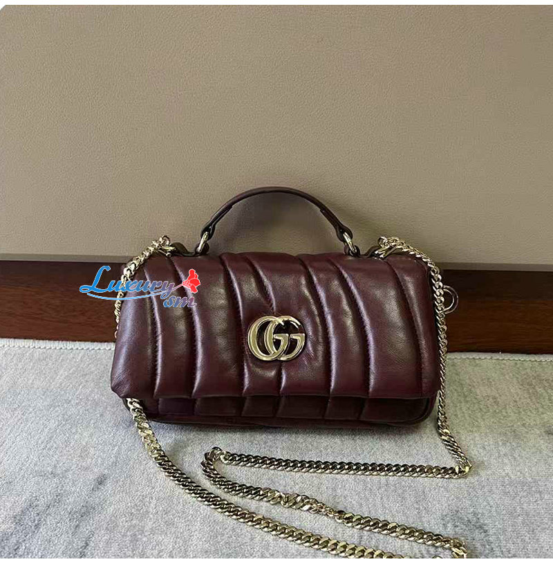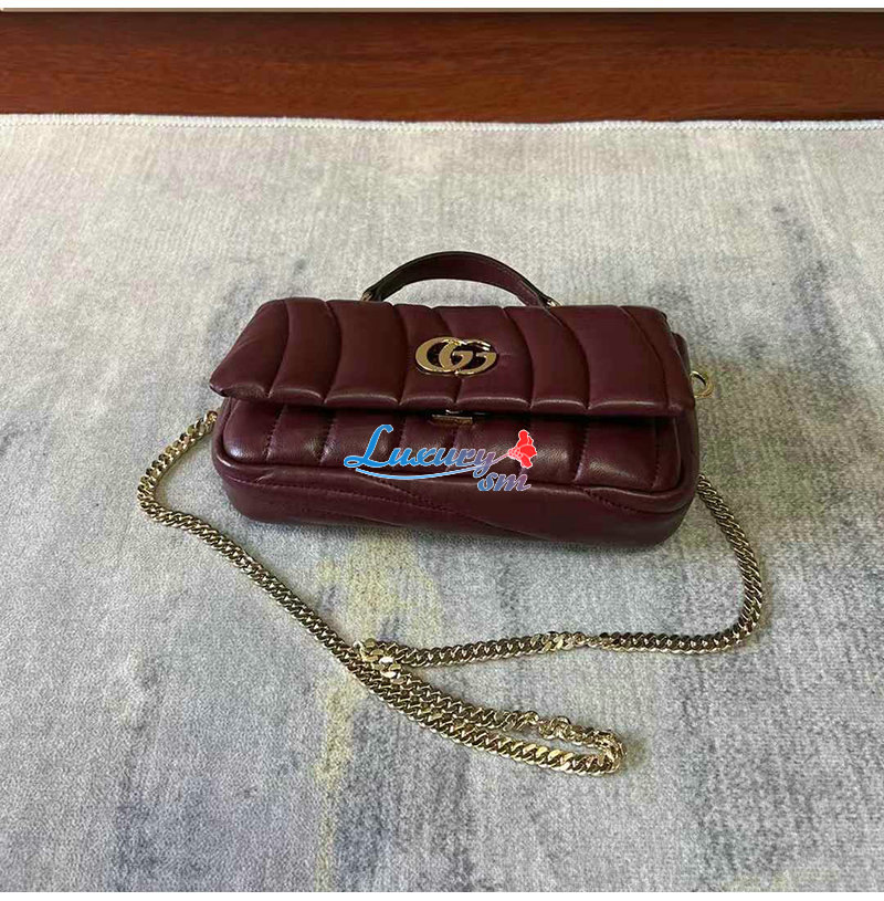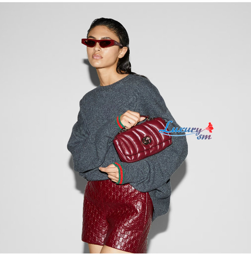 [스페셜오더]GUCCI-806017 6207 구찌 레드 패딩 퀼티드 레더 GG 밀라노 미니 탑 핸들백