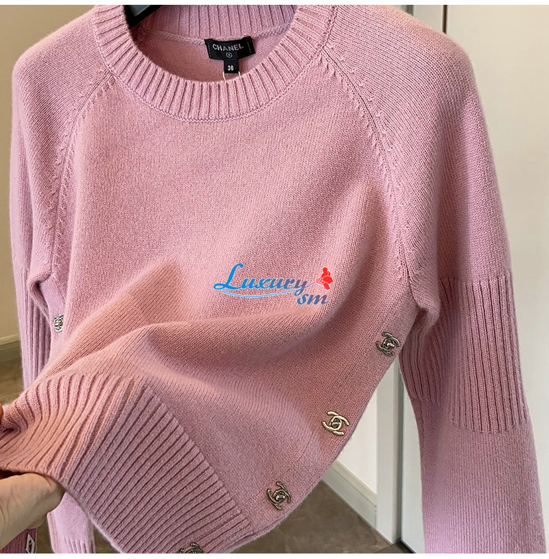 CHANEL-101511 샤넬 핑크 메탈 CC 로고 스웨터 여성용
