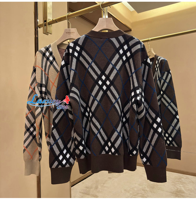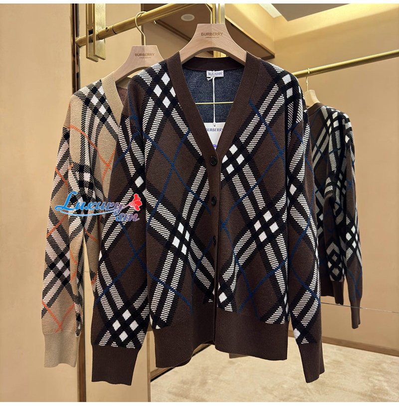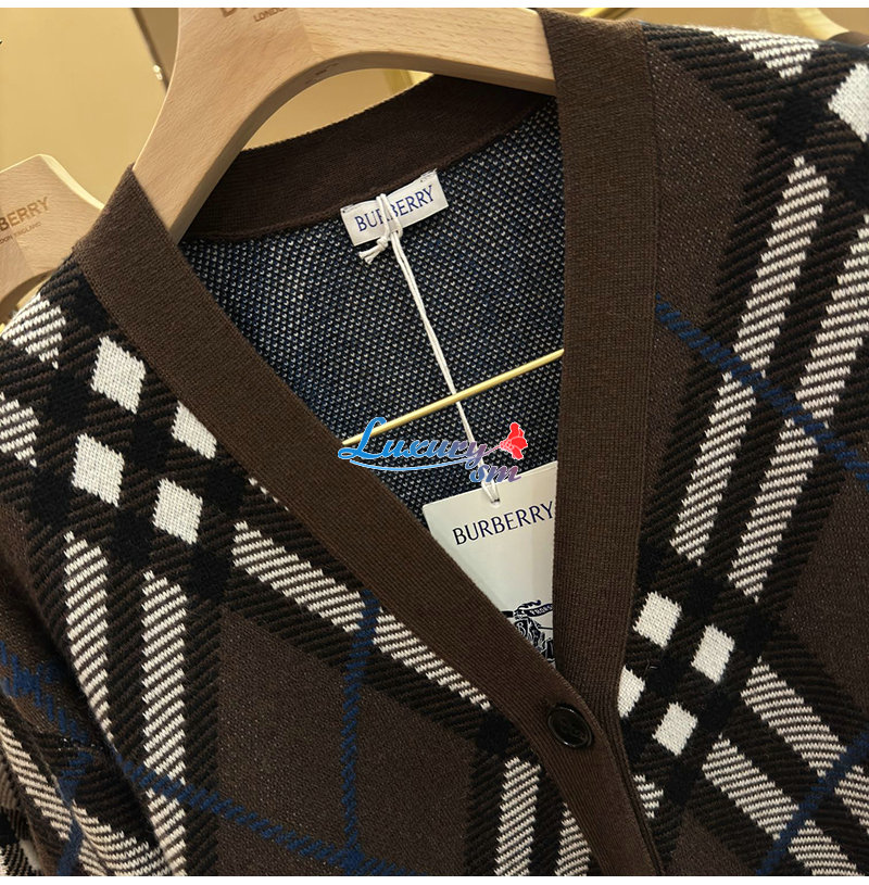 BURBERRY-80934911 버버리 샌드 체크 울 블렌드 카디건 여성용