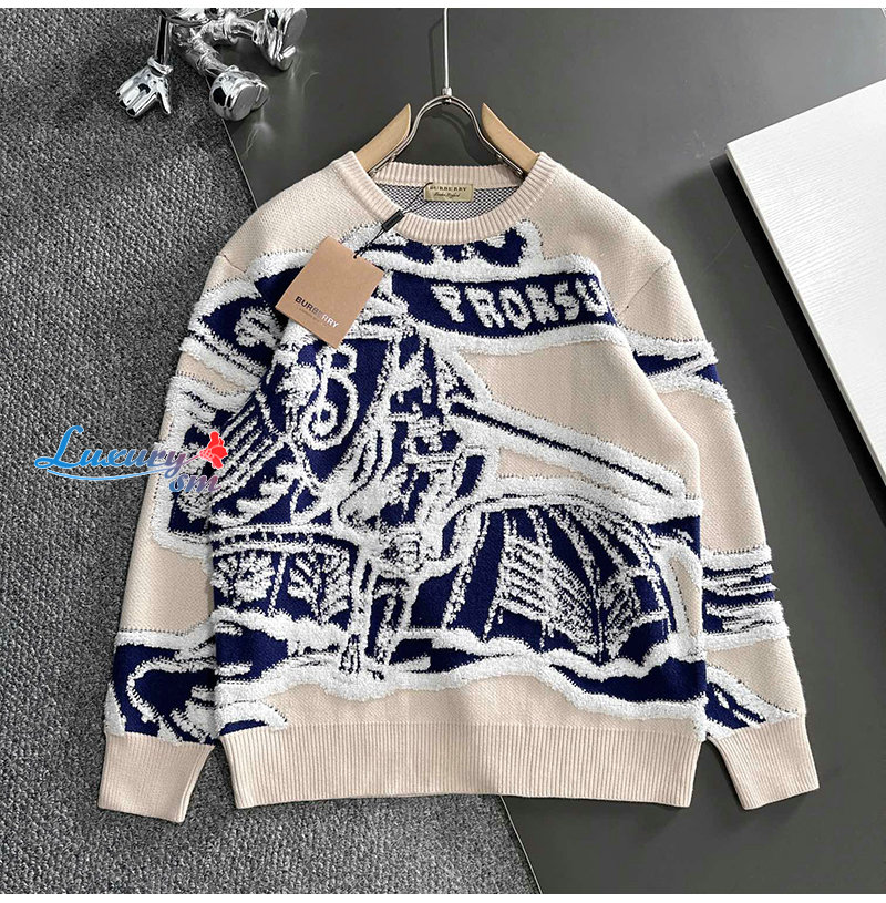 BURBERRY-111116 버버리 아이보리/블루 아카이브 로고 스웨터 남여공용