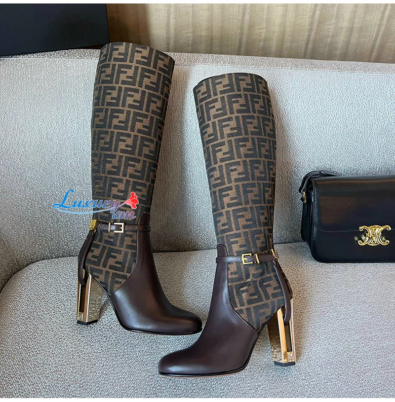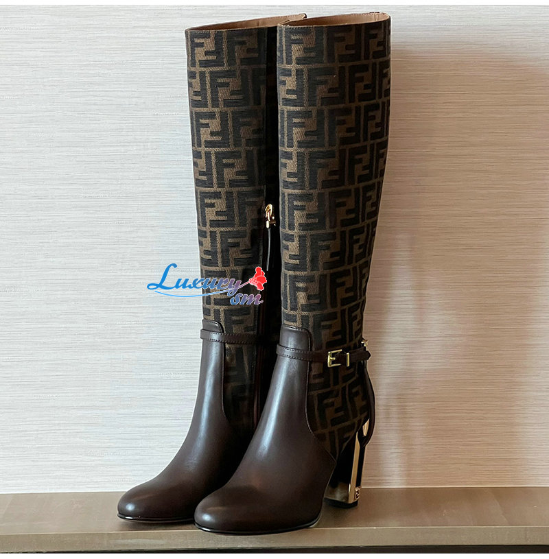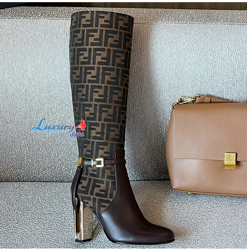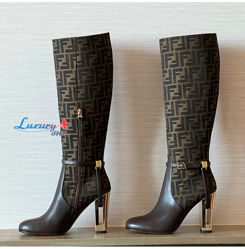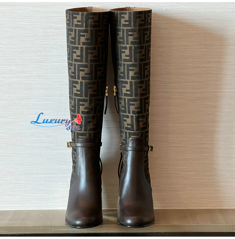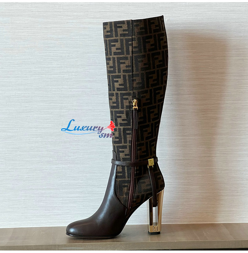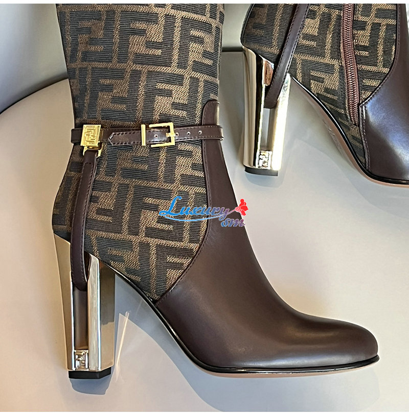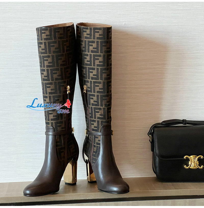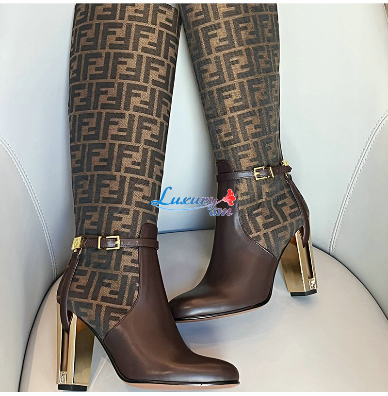 FENDI-8W8440 펜디 브라운 가죽 FF 델피나 하이힐 부츠