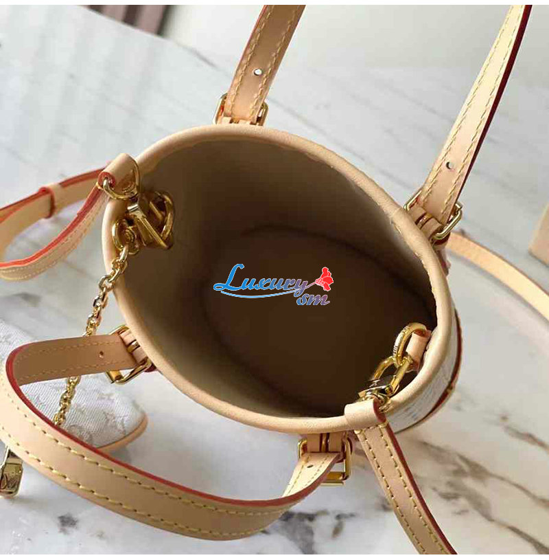 [스페셜오더]LOUIS VUITTON-M82418 루이비통 베이지/느와르 모노그램 로터스 면 나노 버킷 백 가격 : 340,000원