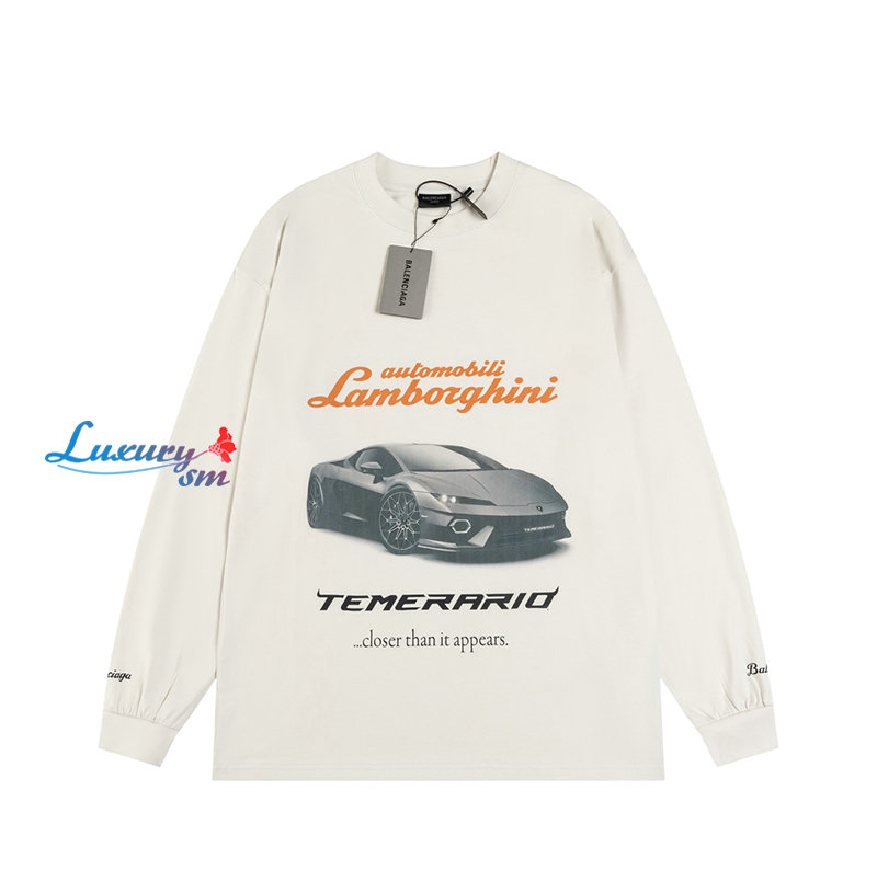 BALENCIAGA-121713 발렌시아가 화이트 프린트 장식 긴팔 티셔츠 남여공용