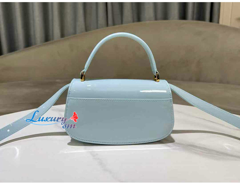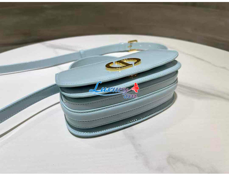 페일 블루 컬러의 페이턴트 송아지 가죽으로 제
