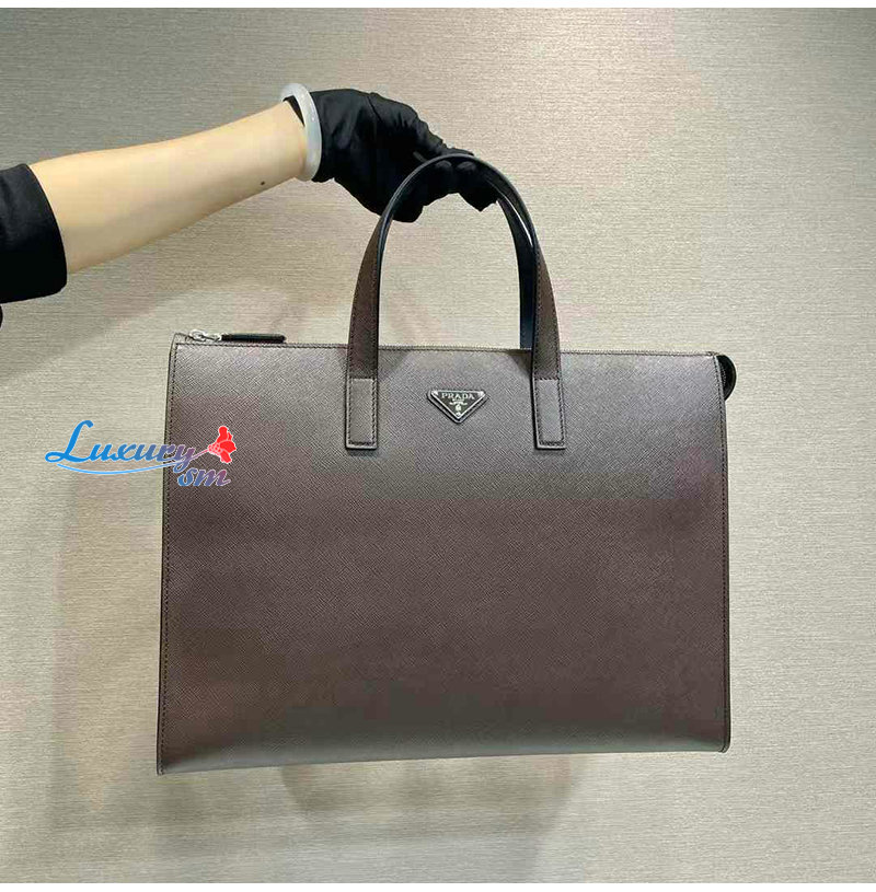 [스페셜오더]PRADA-2VG039 프라다 블랙 사피아노 가죽 트라이앵글 로고 브리프케이스