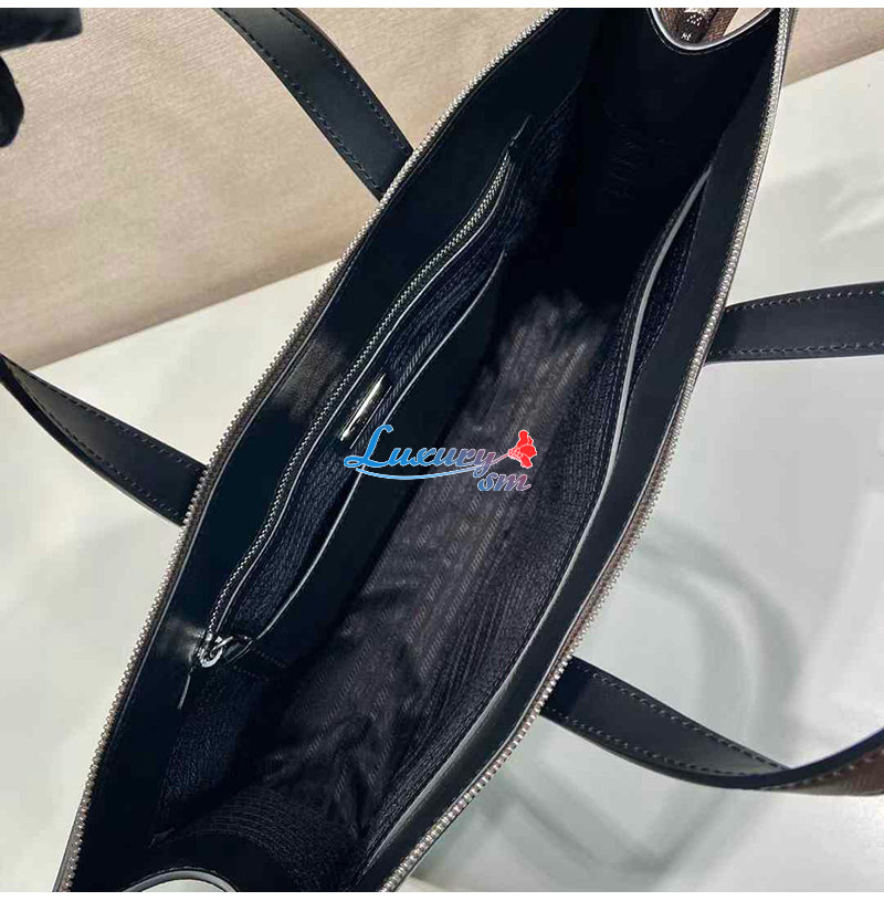 [스페셜오더]PRADA-2VG039 프라다 블랙 사피아노 가죽 블랙 실크스크린 로고 토트백