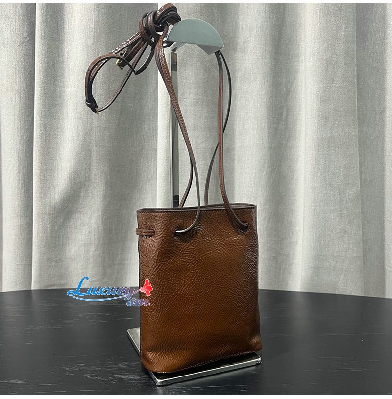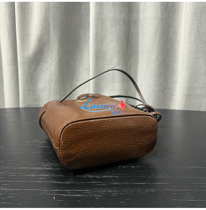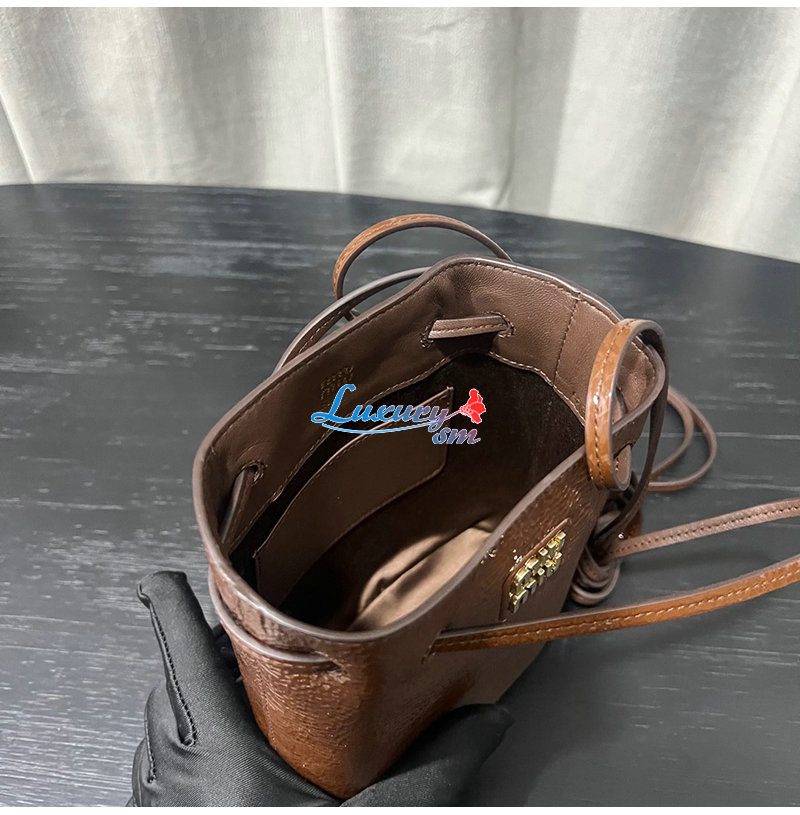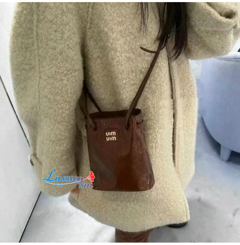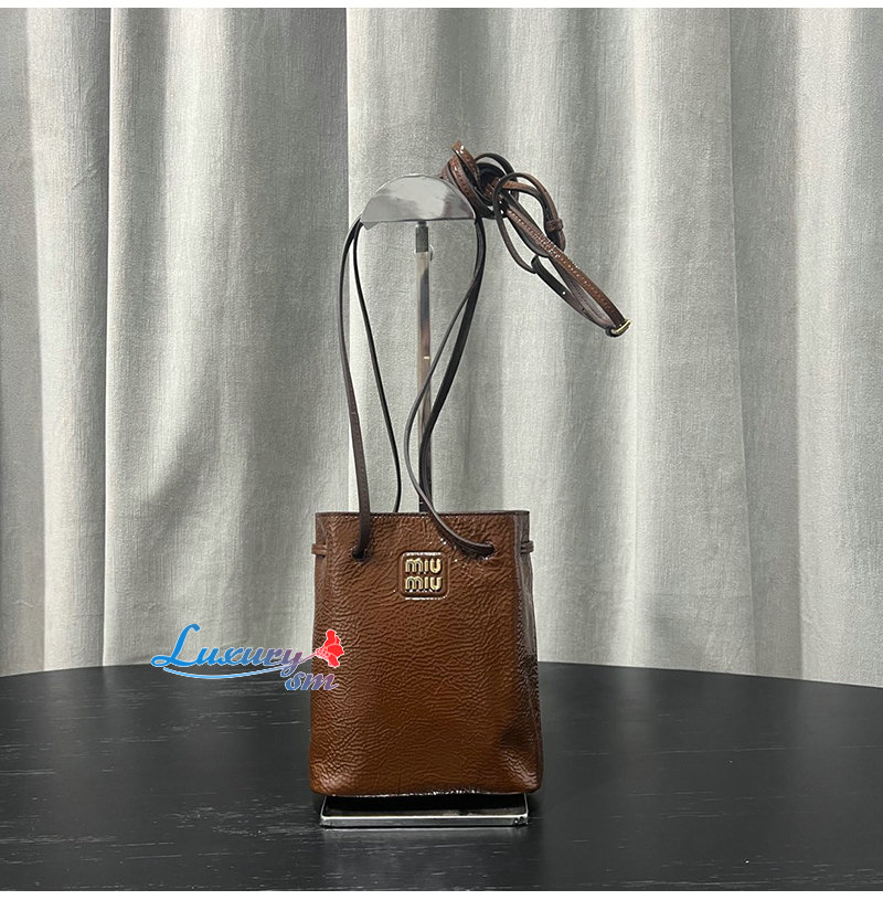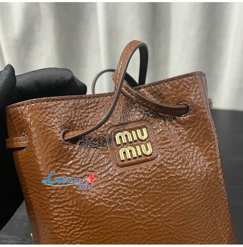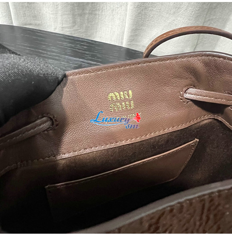 특수 가죽 처리와 메탈 레터링 로고로 미우 미우의