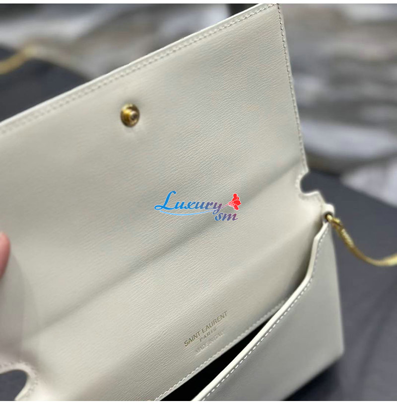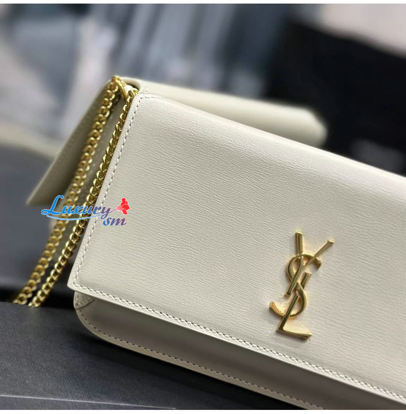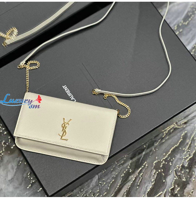 메탈 YSL 이니셜 장식 가죽 체인 숄더 스트랩.