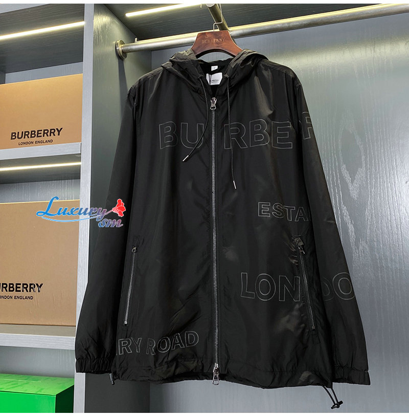 BURBERRY-02173 버버리 블랙 프린트 장식 바람막이 후드 재킷 남여공용