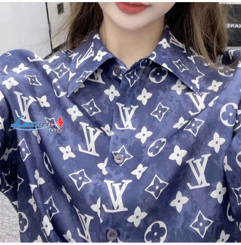 LOUIS VUITTON-02175 루이비통 블루 모노그램 코튼 셔츠 여성용