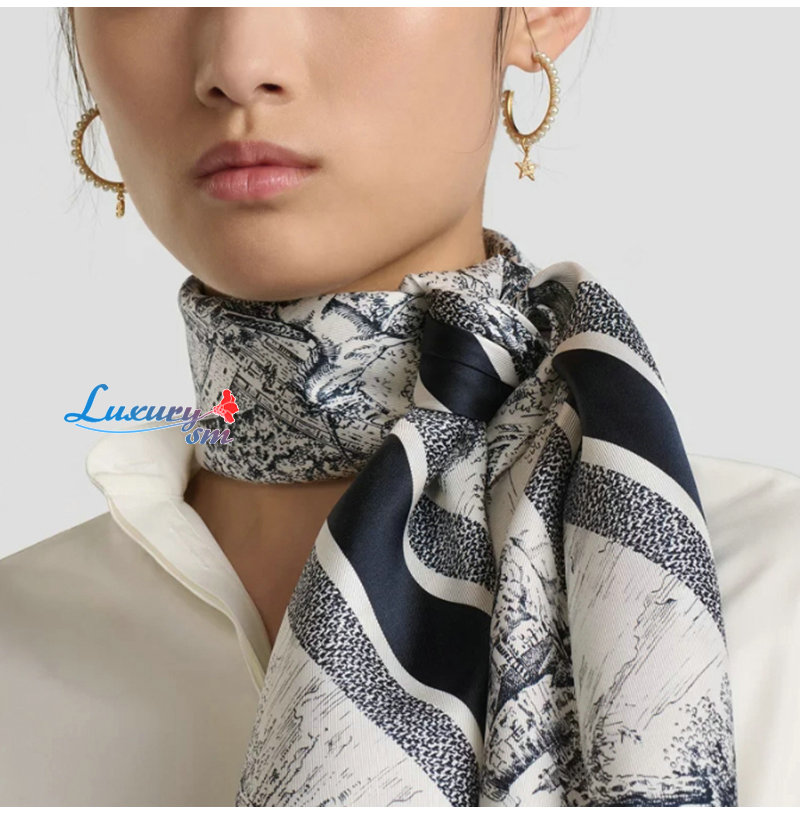 DIOR-51SCO0 디올 블랙 Toile de Jouy Scotland 90 스퀘어 스카프
