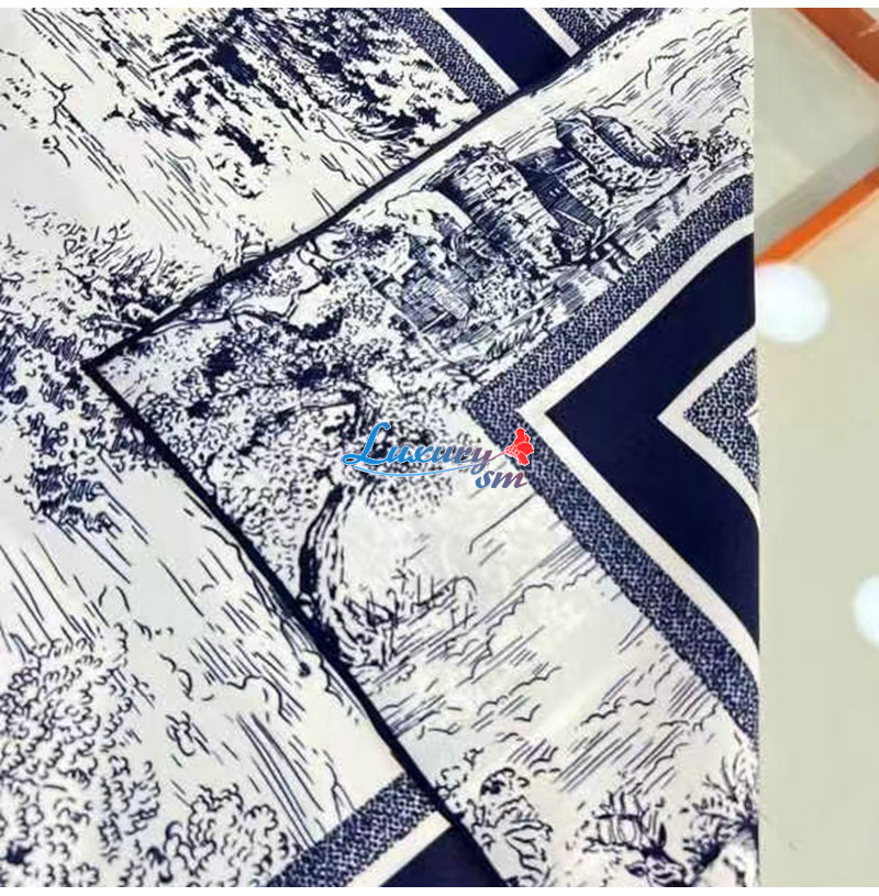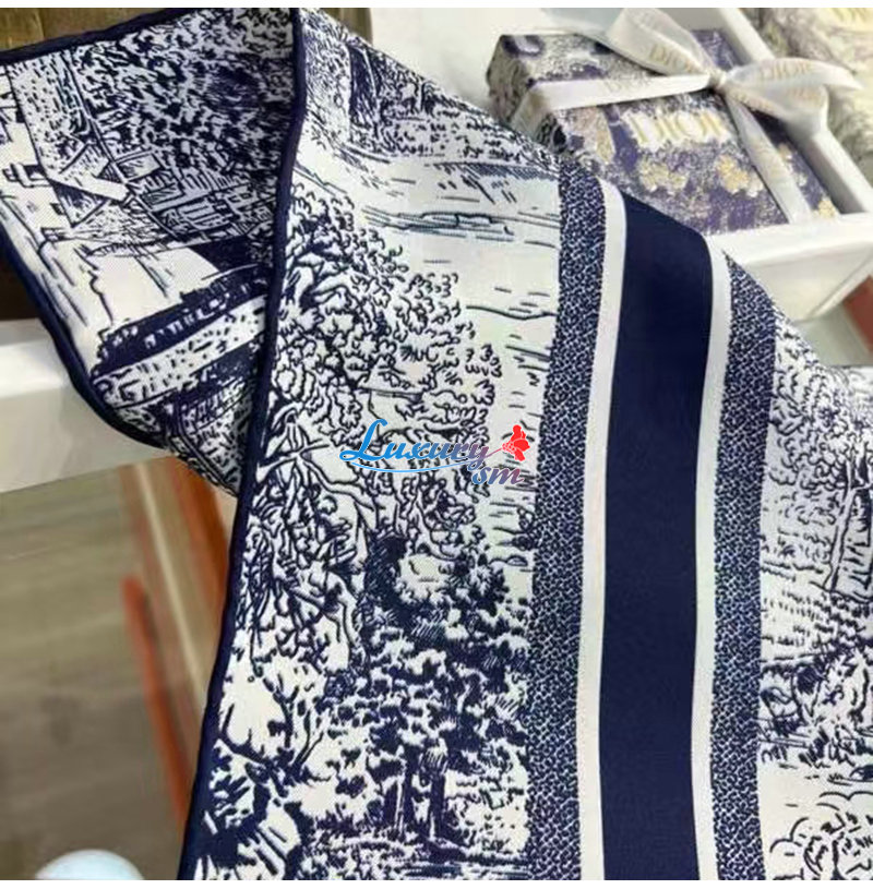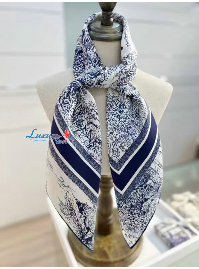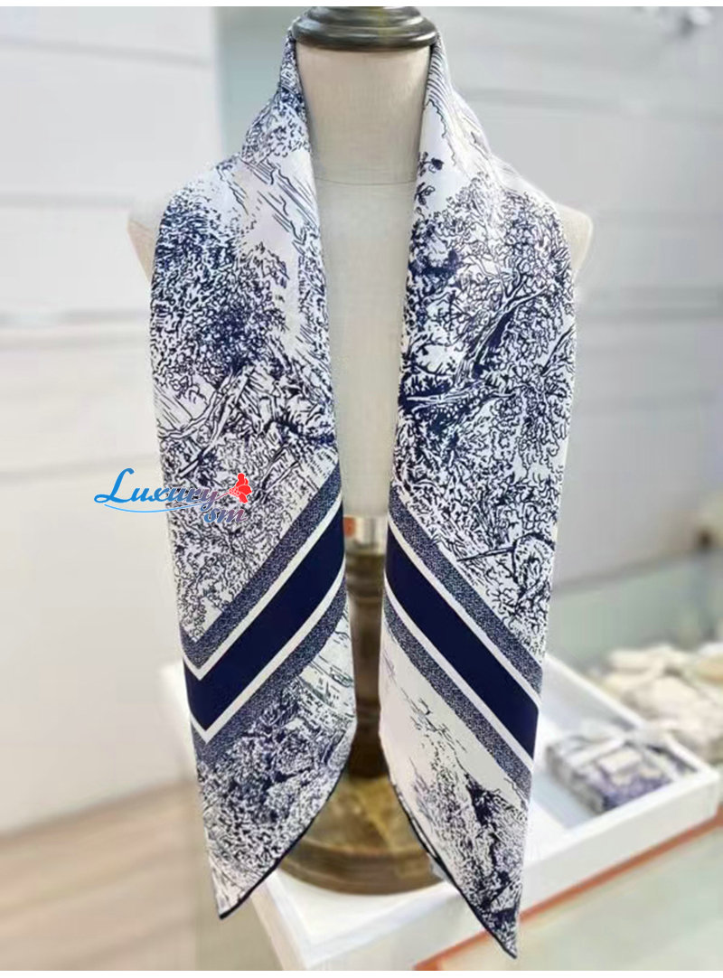 DIOR-51SCO0 디올 네이비 Toile de Jouy Scotland 90 스퀘어 스카프