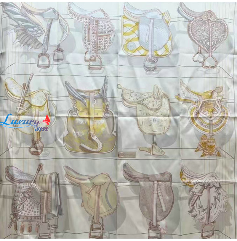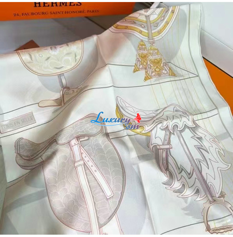 HERMES-H004204S 에르메스 화이트 Tous en Selle 스카프