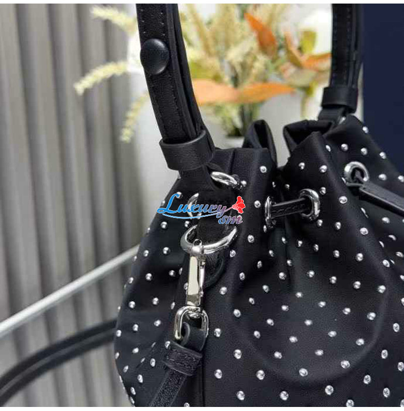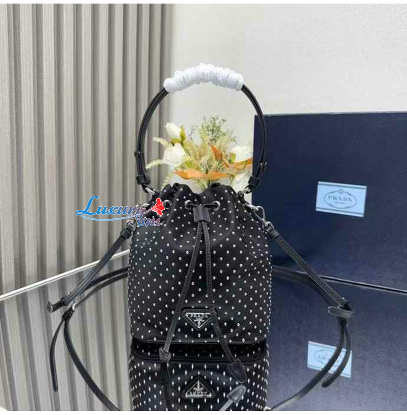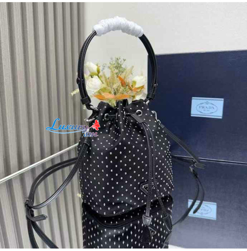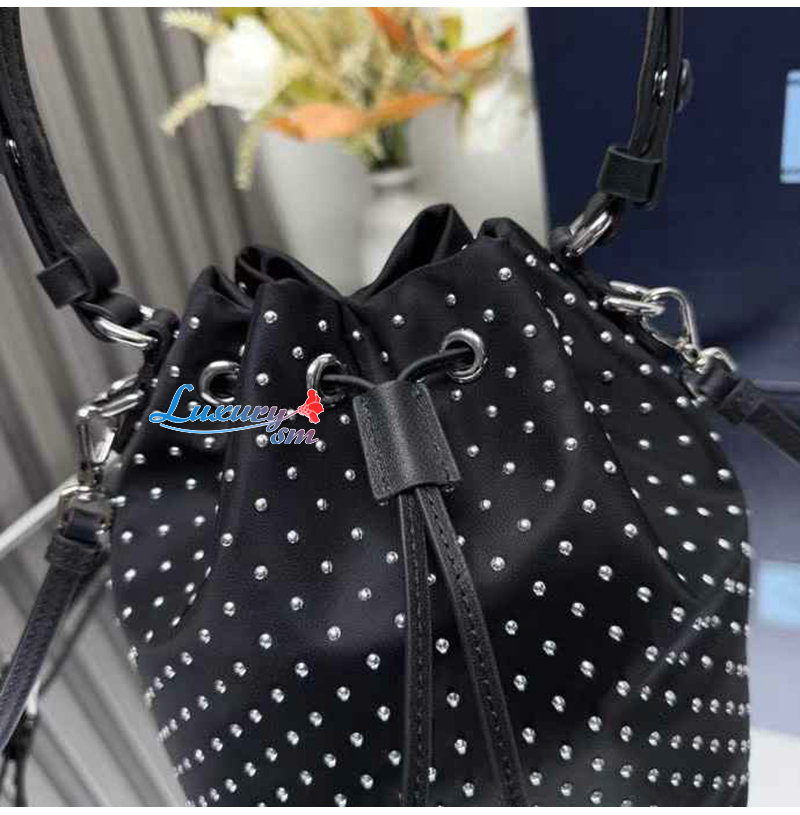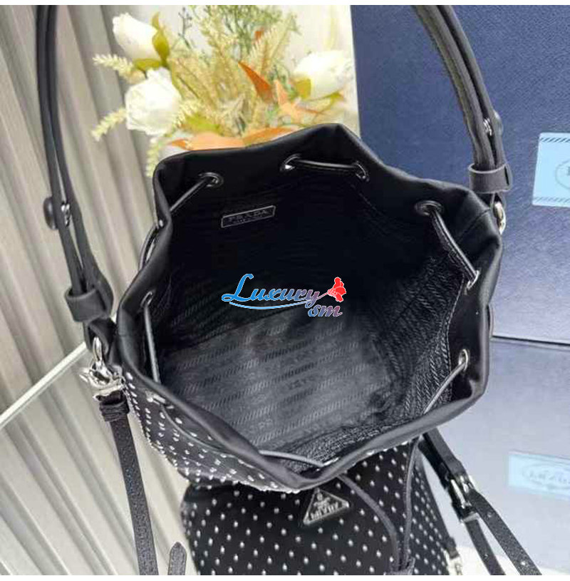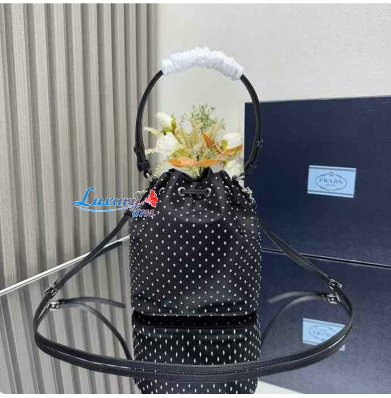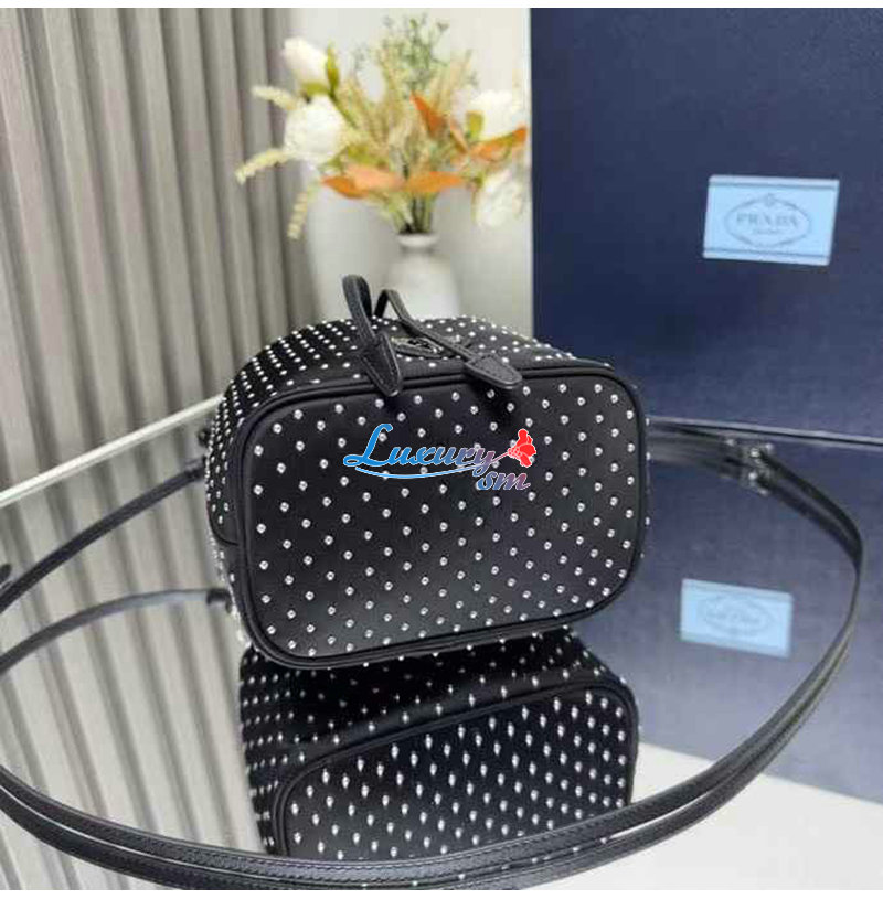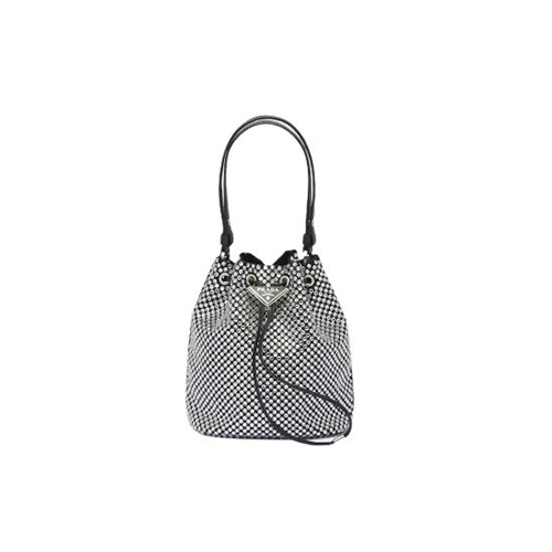 [스페셜오더]PRADA-1BE067 프라다 실버 크리스털 장식 새틴 미니 버킷 백