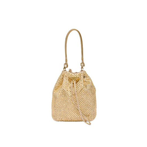 [스페셜오더]PRADA-1BE067 프라다 골드 크리스털 장식 새틴 미니 버킷 백